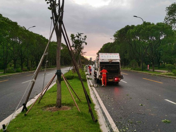 台风过境后,不少新城有关职能单位也迅速行动起来,许多职工志愿加入到本单位的抢险队伍中来,贡献自己的一份力量。新城城管、新城公管中心、新城城公运中心迅速组织党员志愿者,对新城辖区主要道路沿线开展地毯式排摸清理,清除道路两侧倒伏树木残枝、垃圾。对辖区公路重点路段和桥隧的巡查力度,及时清理公路塌方及路面。”他们有些人台风天家里进水都没回去过,有的人家里的小孩还在发烧,只能让家人照顾就医,自己忙着抢险救灾,大家一心想着就是尽快恢复新城的生产生活秩序。”这些单位相关负责人说道。