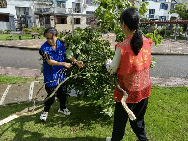 在新城基层社区、村,这里也涌动着大批“红马甲”的身影。志愿者们积极开展灾后环境整治工作。大家对辖区内道路、下水管井进行检查,疏通管道,确保雨水能够及时排出。对主次干道上的断枝及其垃圾进行清理,对影响车辆通行的道路进行清障,对倒地的垃圾桶进行扶正和归位,保证居民出行安全。这些举动群众看在眼里,记在心里。“他们台风天,积极帮助居民安置转移,台风后又积极开展环境整治工作,有的人都好几天没回家了”社区居民说到。