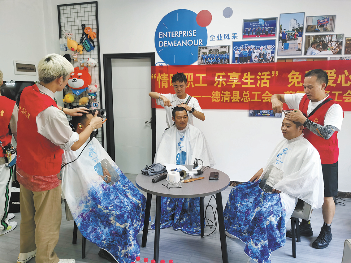 为更好地服务广大职工群众,满足职工群众的生活需求,日前,德清县总工会开展“情暖职工 乐享生活”免费爱心理发活动,首场活动选在浙江犇达网络科技有限公司德清分公司,为平时忙着送餐的外卖员们换个新发型。