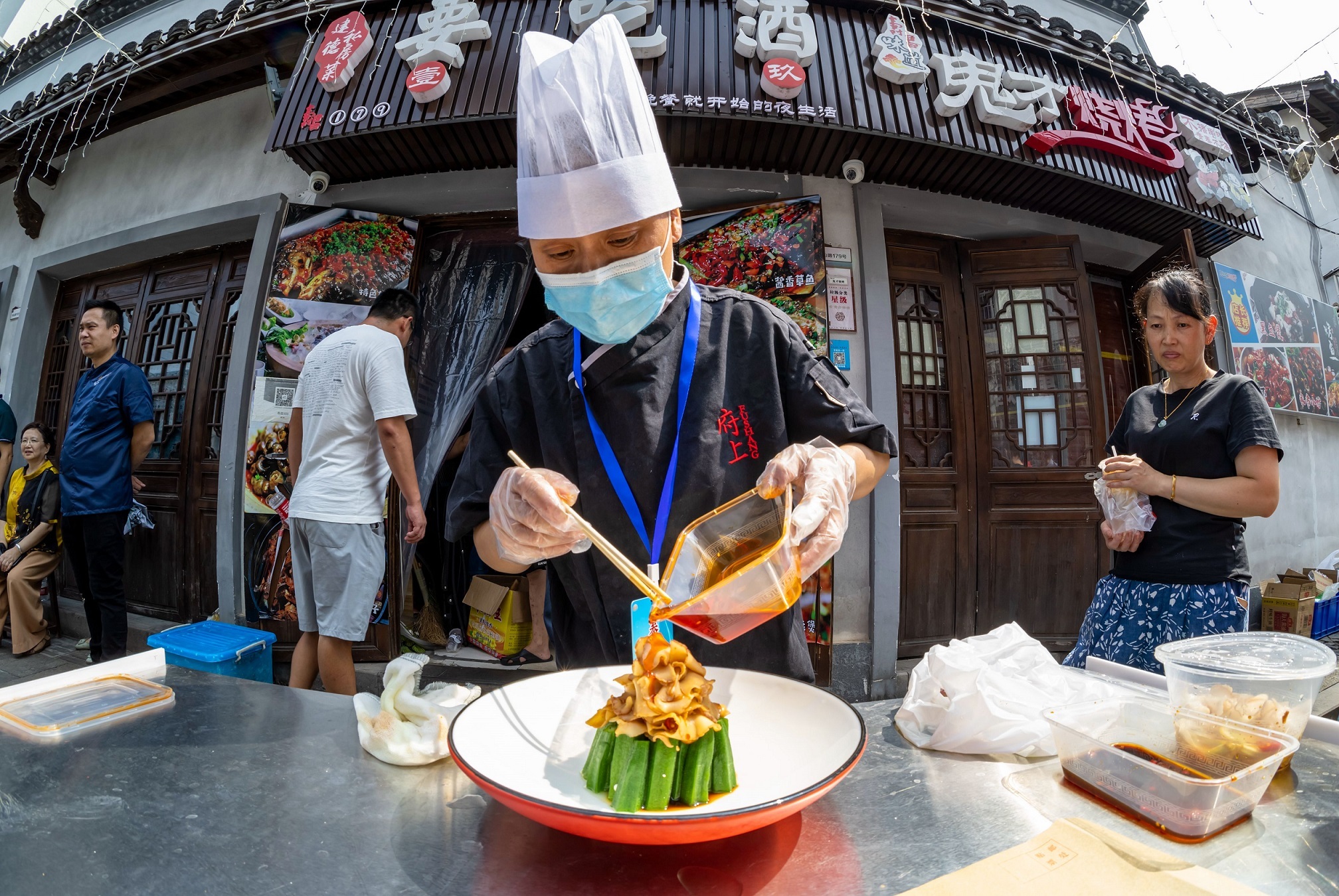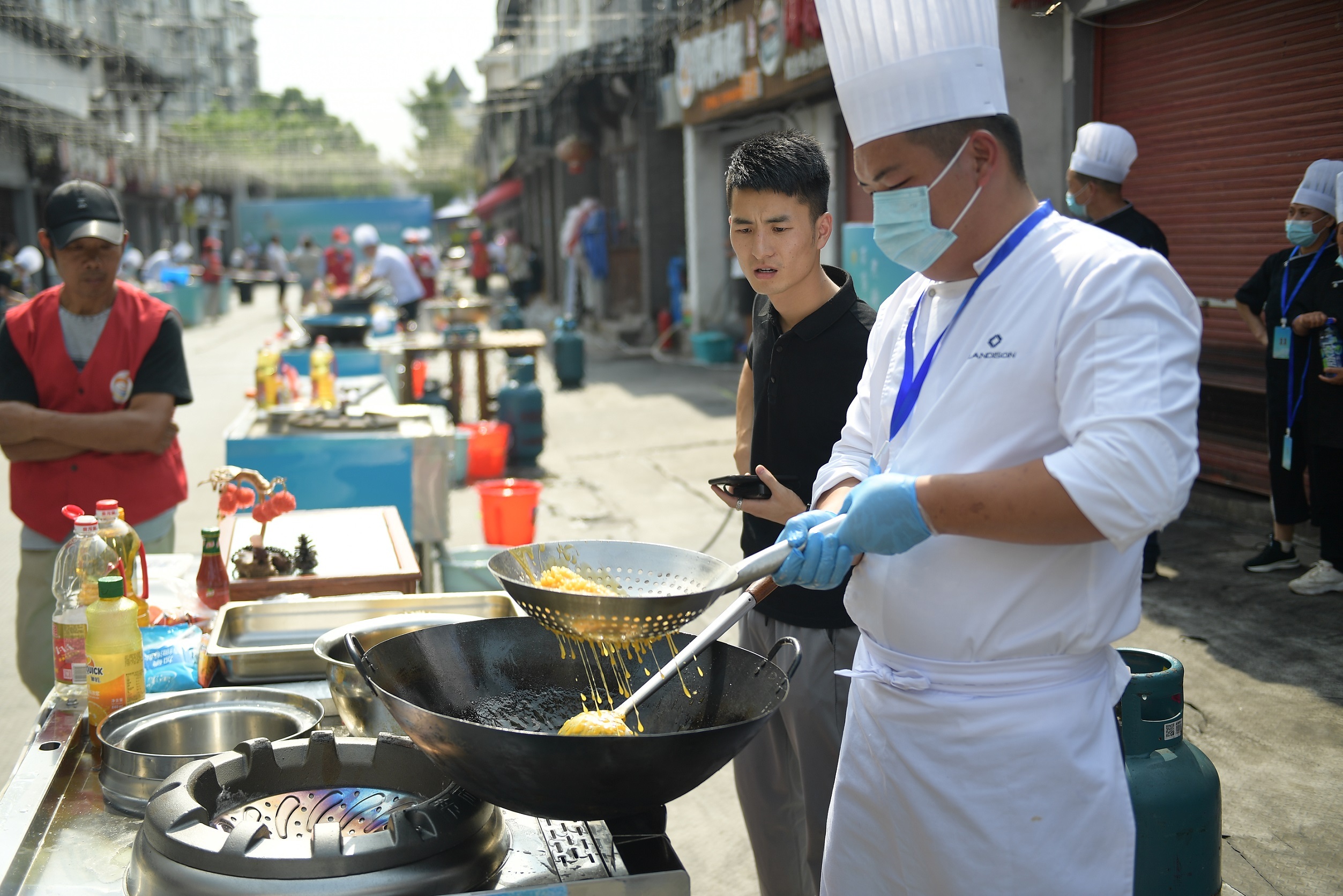 近日,在建德市总工会和建德市人社局共同举办的2022年“技能建德”中式烹调师职业技能竞赛上,全市36名厨师技能大师在寿昌镇909夜市前集结,在方寸之地上演绎“灶台”上的速度与激情。
