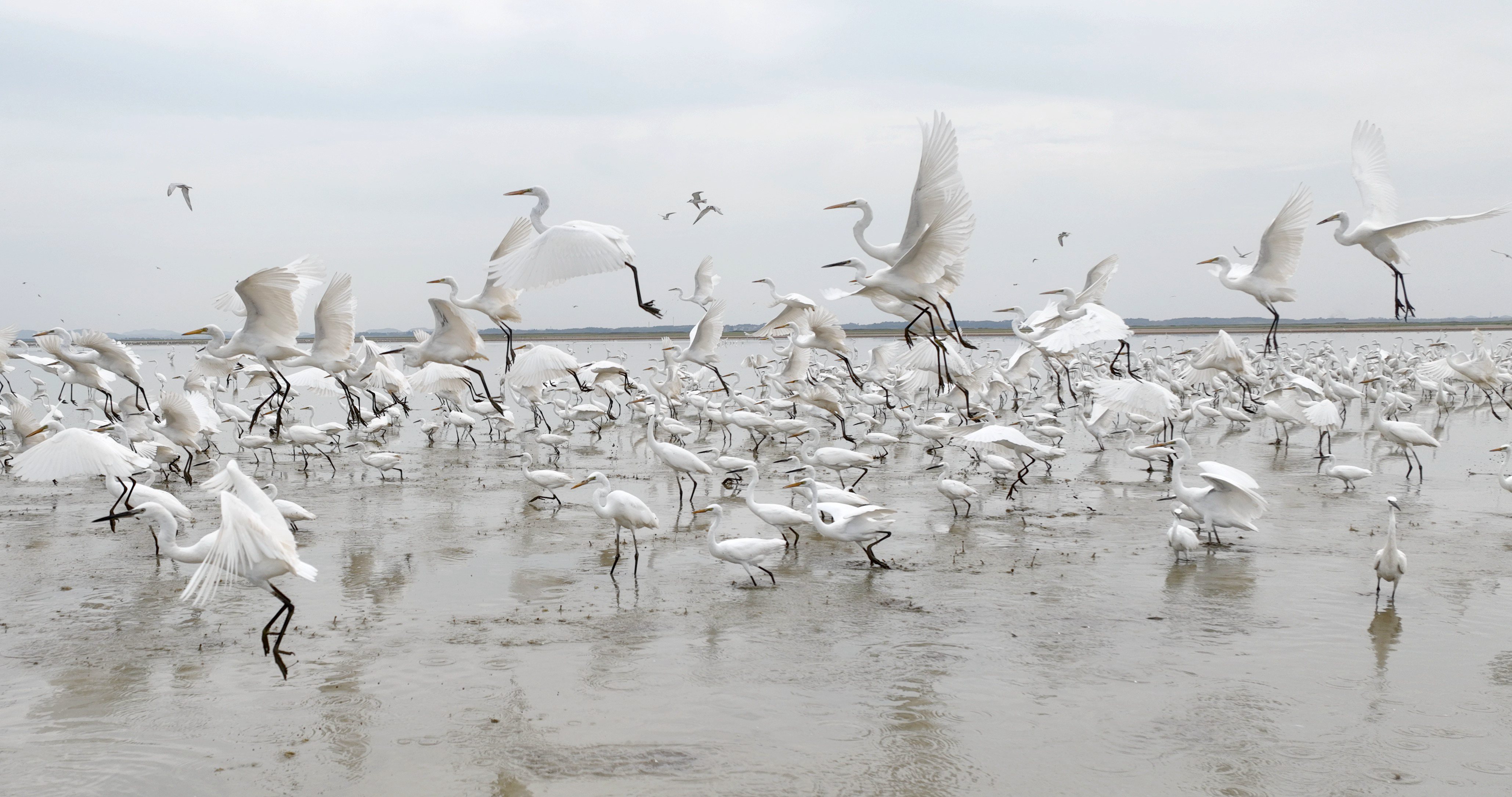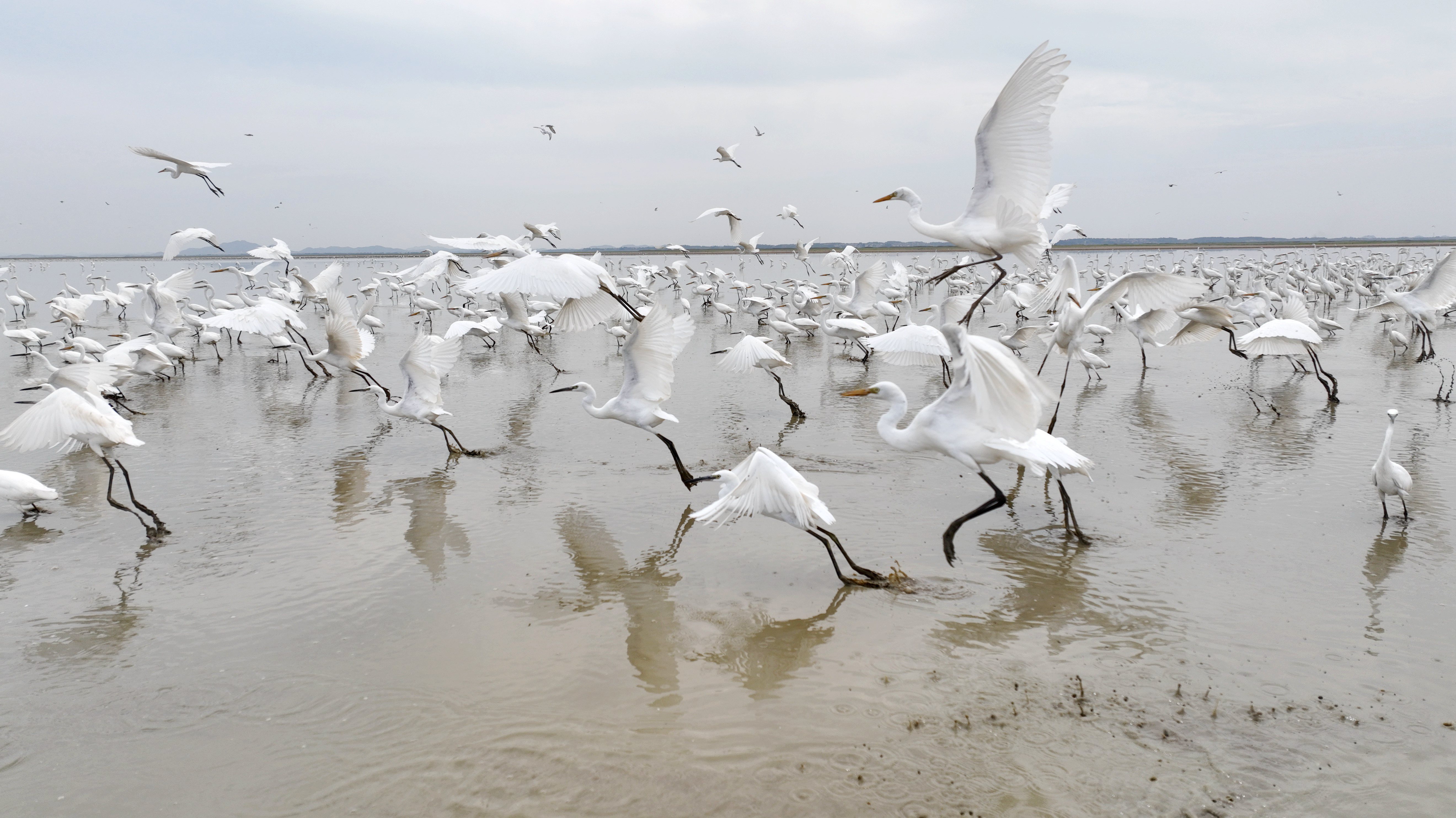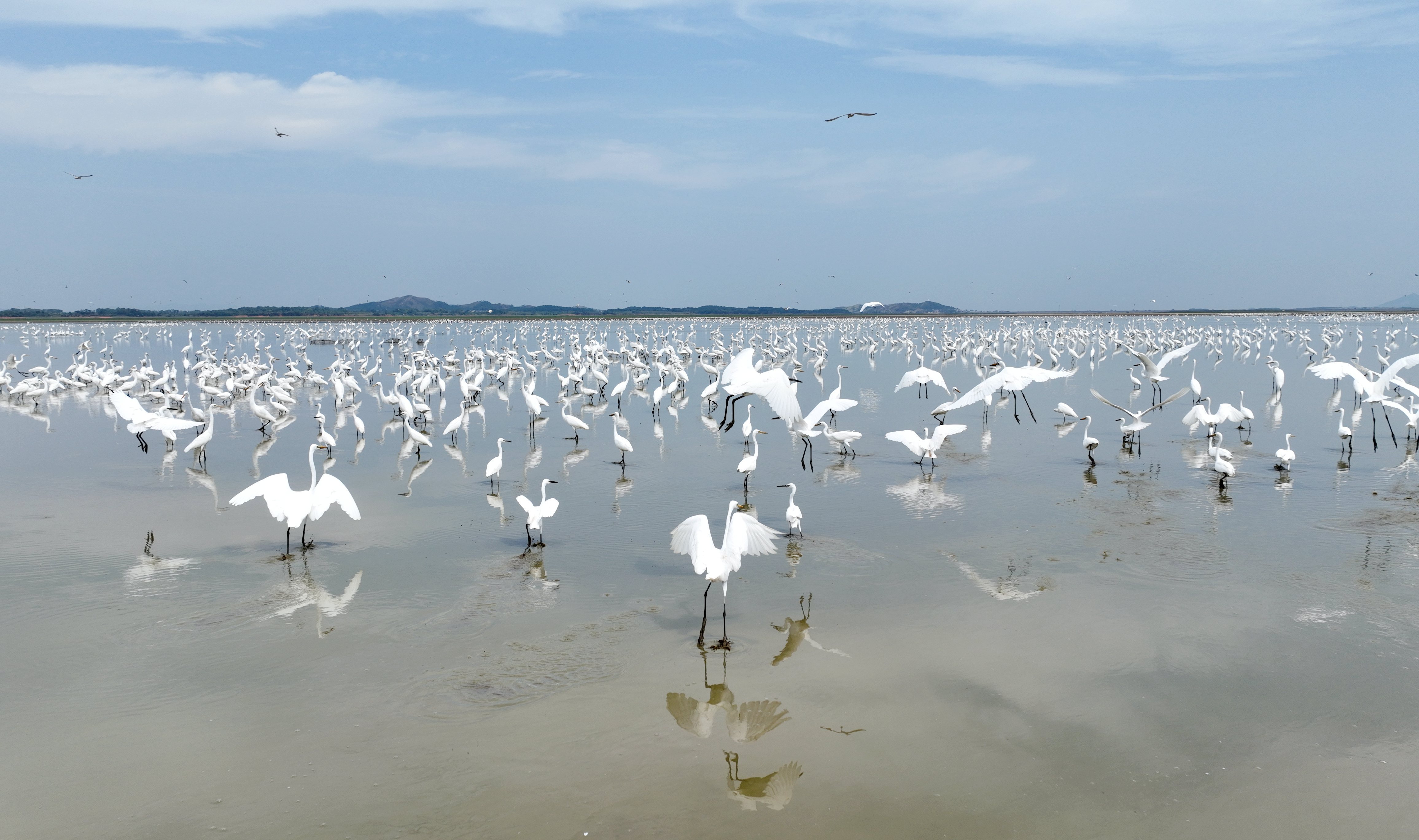 江西都昌:数万只白鹭齐聚鄱阳湖湖汊,场面壮观