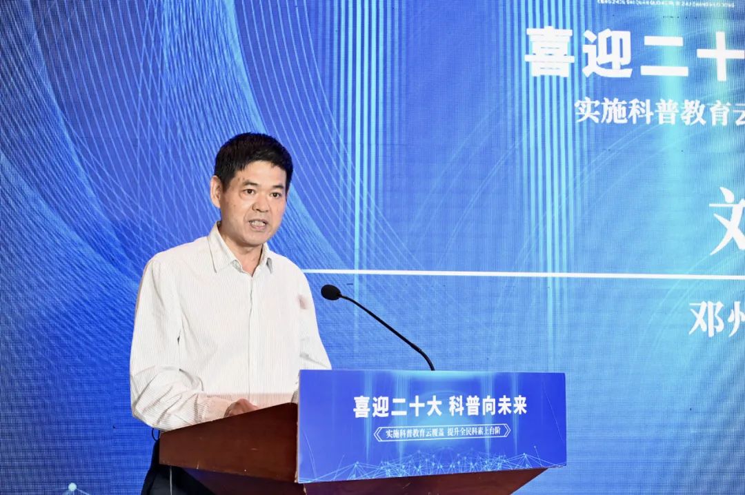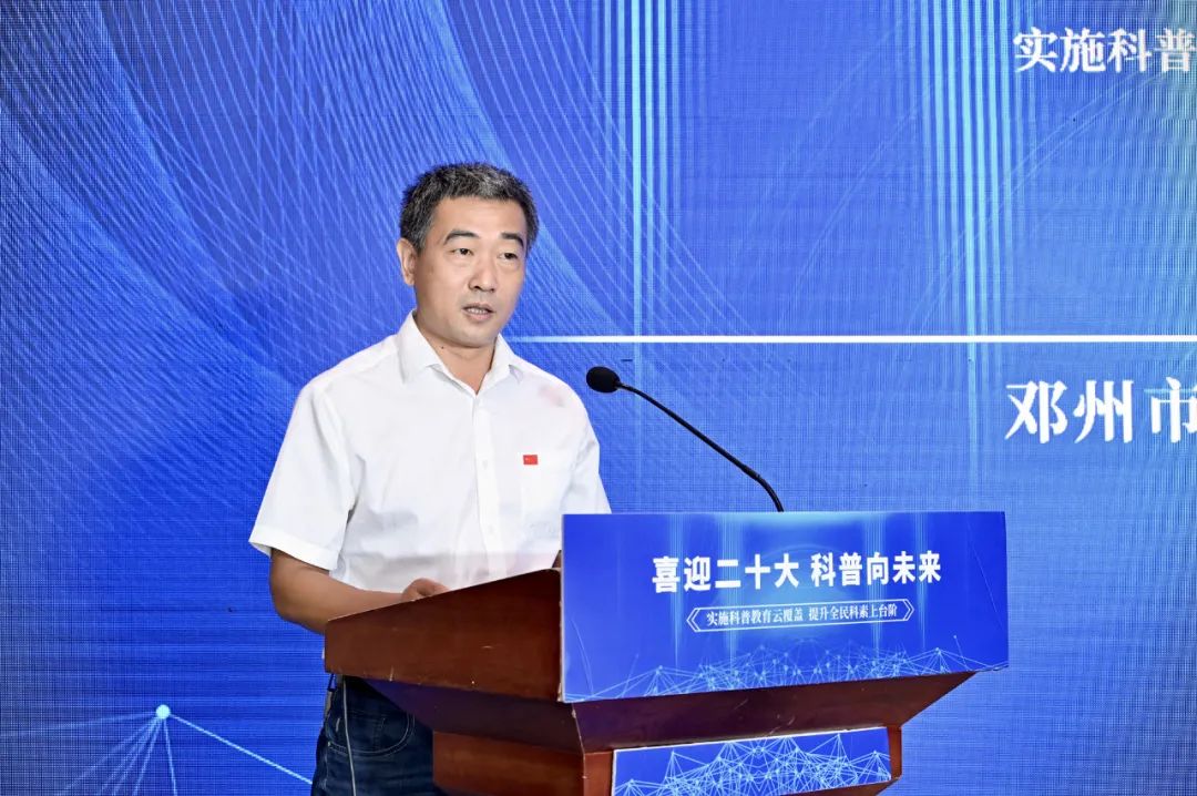 △刘祖万“2022年,是全国科普日的第20个年头,也是新时代科普工作重要的一年。”邓州市科协主席刘祖万在“全国科普日”活动启动仪式上表示,今年出台的《“十四五”国家科学技术普及发展规划》,明晰了科普工作未来几年的任务图和路径图;而近日中办、国办联合印发的《关于新时代进一步加强科学技术普及工作的意见》,则让新时代科普工作有了指导纲领。面对新的科普局面和顶层设计,邓州市科协将进一步增强责任和使命意识,真抓实干,营造热爱科学、崇尚创新的社会氛围,为邓州建设科技强市固本培元,为实现经济社会高质量发展夯实根基。