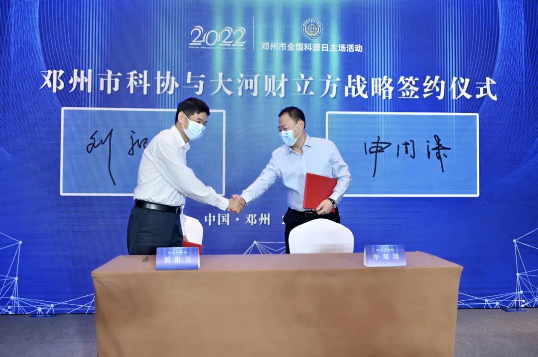 此次签约,大河财立方将利用自身在新媒体技术以及承办各类大众认知提升活动上的经验与资源,为邓州市科普工作的深入开展提供思路和决策咨询。