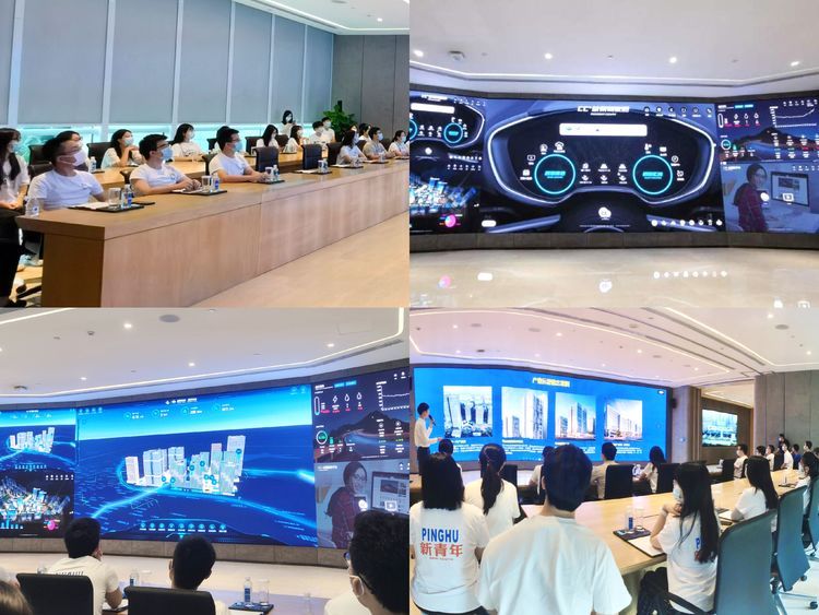 在总裁驾驶舱,讲解员向平湖青年介绍了天安骏业集团、天安云谷建设项目的整体发展规划及运营情况,还现场进行了CC+、驾驶舱等智慧园区智慧化系统演示。据介绍,总裁驾驶舱聚合产城空间的所有数据,并结合业务分析模型,提供可视化、场景化的多维分析报表,为运营方决策提供依据,以“大数据”驱动园区智慧运营。随后,学员们陆续参观了云平台、党群服务中心、奋斗者阶梯、云顶花园等园区配套设施服务。