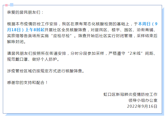 上海已有多区发布告居民书