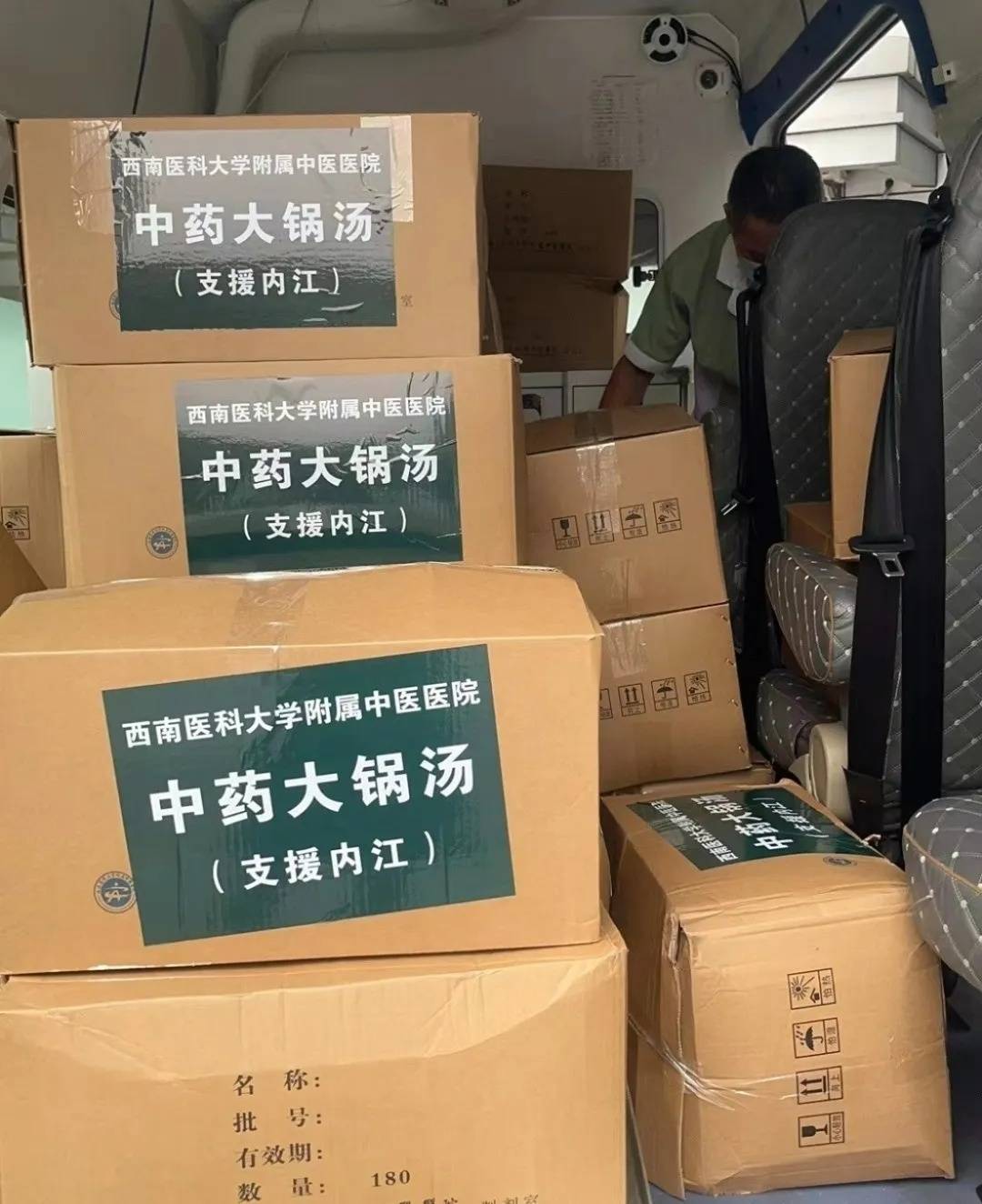据了解,为做好此次中医药支援,内江市疫情防控应急指挥部专门印发通知专项部署,内江市中区、东兴区、经开区、高新区应对疫情应急指挥部成立专项工作组,由分管区长牵头,专人负责, 统筹协调,提前确定接收对口支援中药“大锅汤”的地点, 确定分发高风险区域点位,全力做好接收、分发等工作,按时将50000余份中药“大锅汤”发放到97个中高风险区隔离群众手中,确保集中隔离人员中医药干预全覆盖。