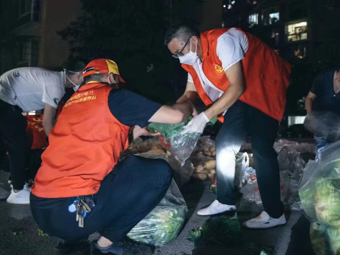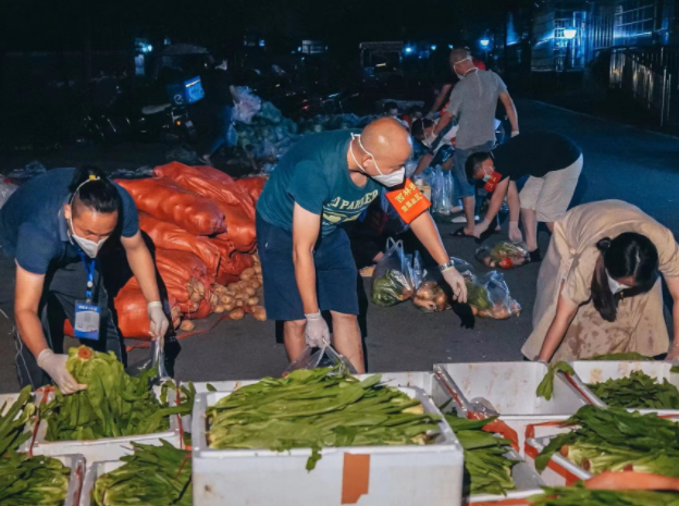 9月16日晚,内江东兴区新坝小区的居民收到业主潘江无偿捐赠8000斤蔬菜,志愿者们逐个打包,将“蔬菜包”送到小区每户居民家中,里面包含油麦菜、仔姜、莲藕、土豆等。