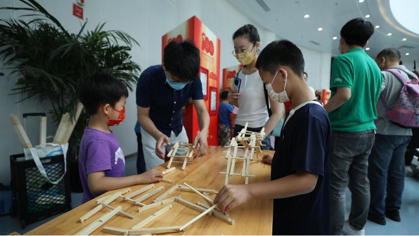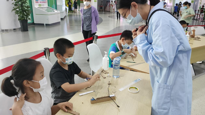 在今天的展线活动中,老师们为参加活动的小朋友准备了“水有多珍贵”和“一桥飞架古今:木拱桥”两项课程。