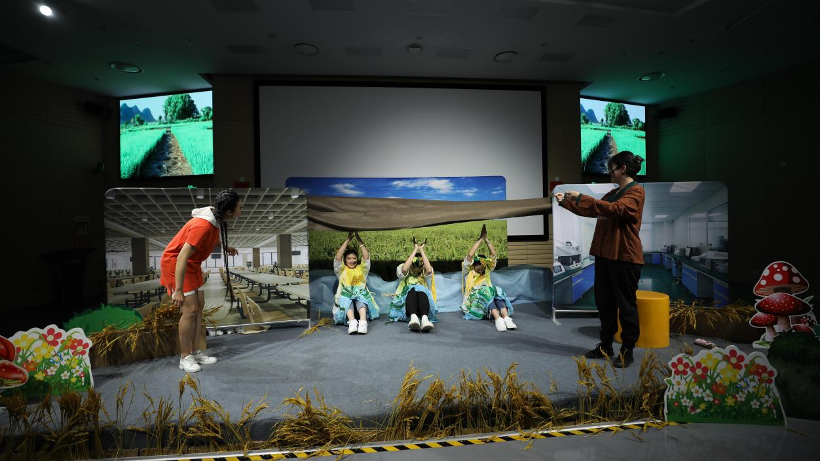 在北京科学中心主展馆地下一层的报告厅中,科普剧《风吹稻香》以拟人化的方式向观众朋友们讲述了“水稻一家”的故事。剧中还展现了一代代农业科学家通过科研选种育种,实现水稻增产和优质稻谷培育的历程。