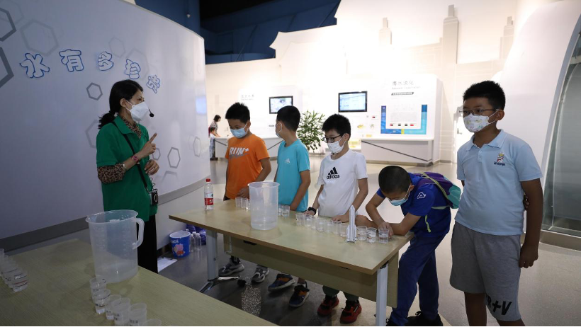 在“水有多珍贵”课程中,老师为同学们讲解北京城市用水的来源和现状,并且带领同学们进行分水小游戏,让同学们亲自动手来分配生活用水,并且思考如何在日常生活中节约用水。