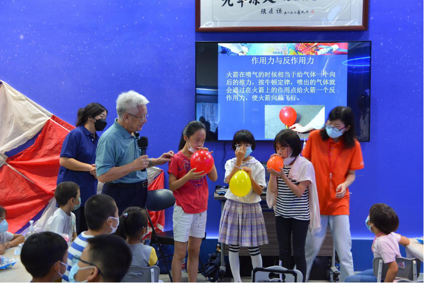 中国航天科技集团公司企业文化部原部长、中华人民共和国国史学会“两弹一星”历史研究分会会刊原总编王春河老师从万户飞天的故事讲起,带领小朋友们回顾了人类从早期的飞天探索到发明火箭的历史。并且和同学们一起体验了火箭的发射过程,亲自动手设计制作了长征火箭的模型。