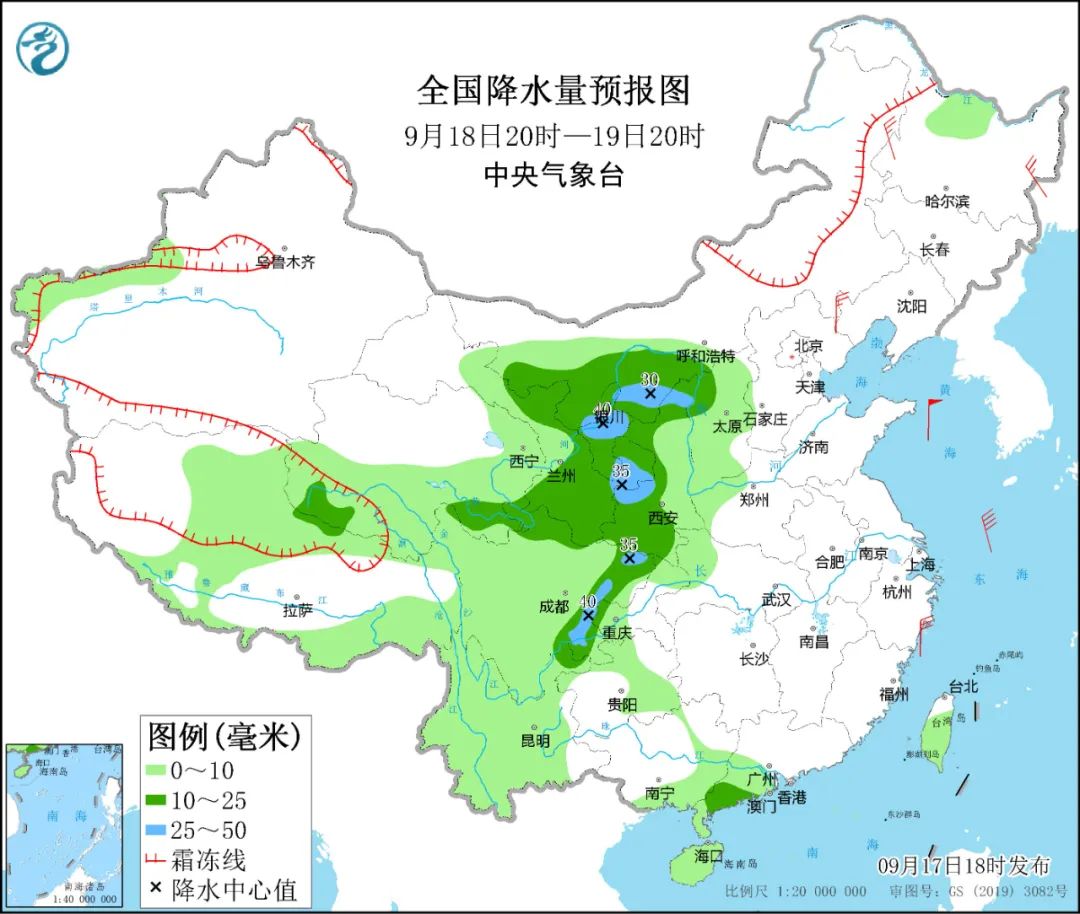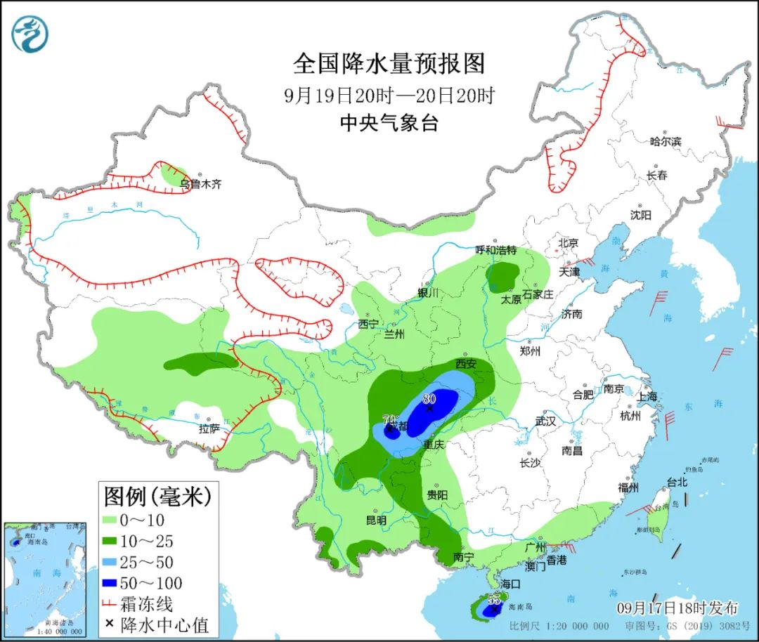 19日夜间到20日白天,陇南、天水两市及甘南州东南部、定西市中部和南部阴有小到中雨转多云,局部地方有大雨,陇南市东南部局部地方有暴雨;河西五市多云或晴,祁连山区东部阴有小雨;省内其余地方阴转多云,部分地方有小雨。受冷空气影响18-19日全省大部气温有所下降。