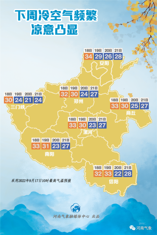预报来源:河南省气象台2022年9月17日12时预报