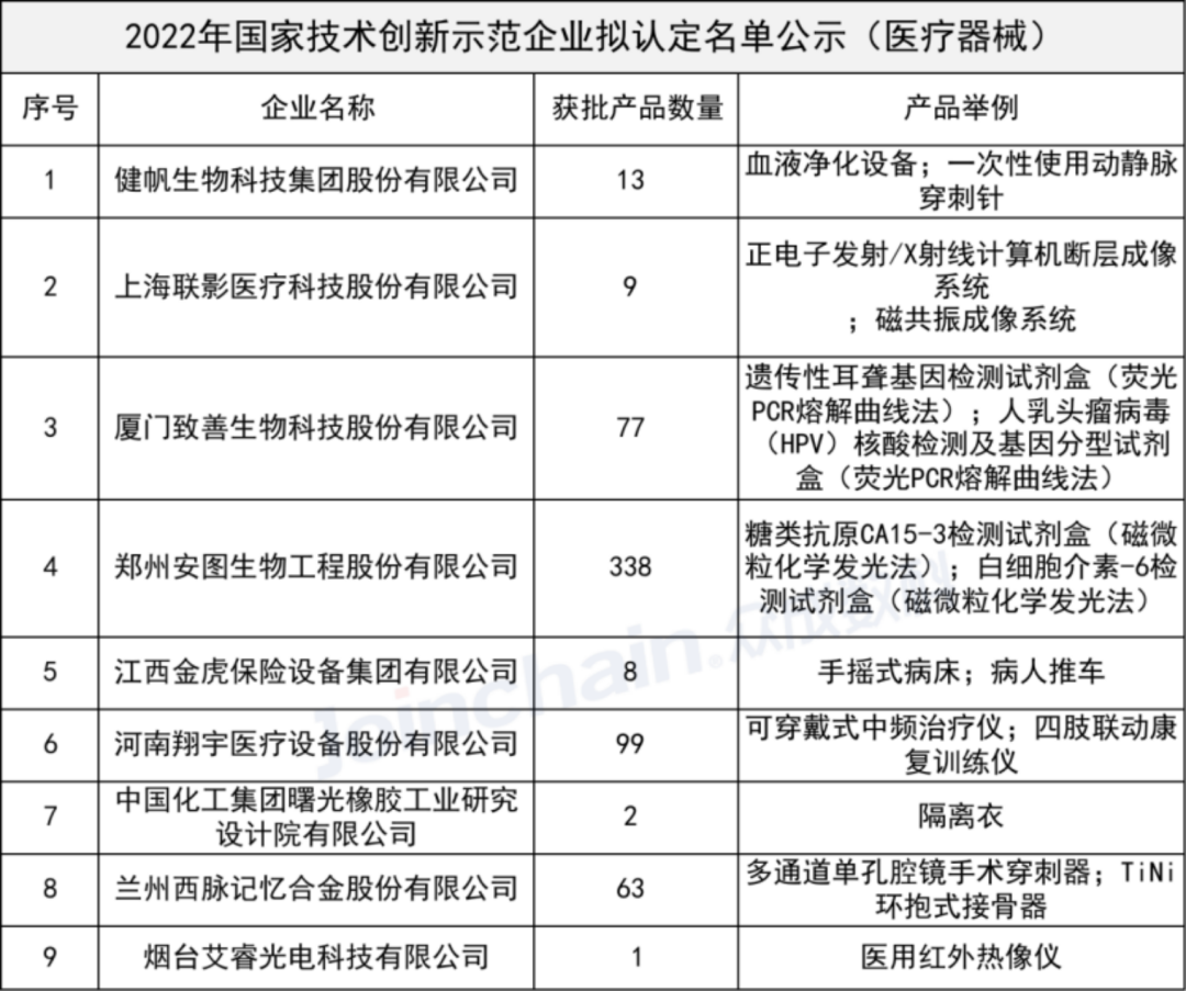 为深入实施创新驱动发展战略,强化企业技术创新主体地位,提升企业技术创新能力。9月13日,工信部发布2022年国家技术创新示范企业拟认定名单公示,一共包含了65家企业,其中9家为医疗器械企业。