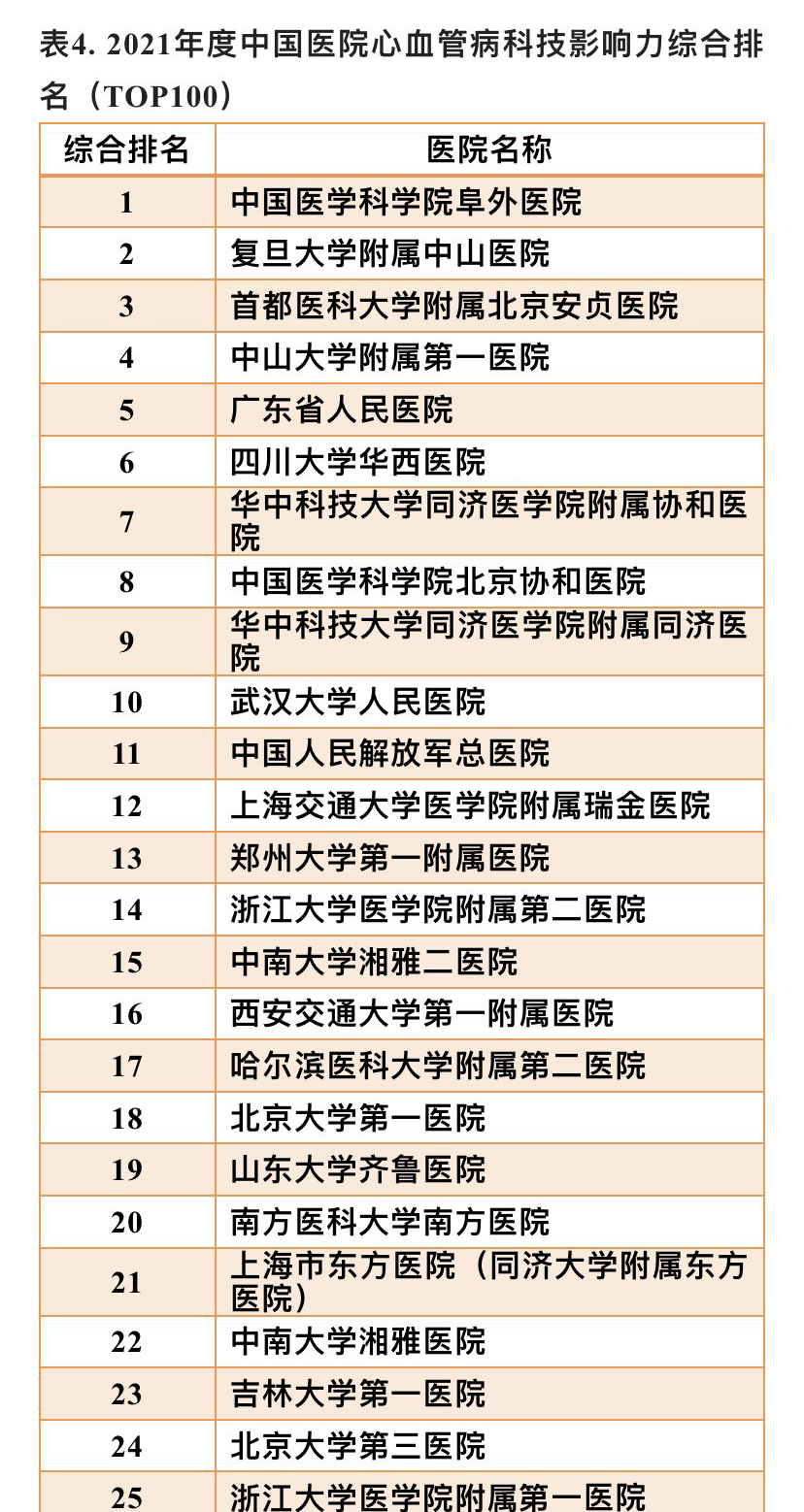 日前,由国家心血管病中心等单位主办的中国心脏大会召开,会上《中国心血管病医疗质量报告(2021)》发布,同时公布了2021年度中国医院心血管病科技影响力综合排名(TOP100)。