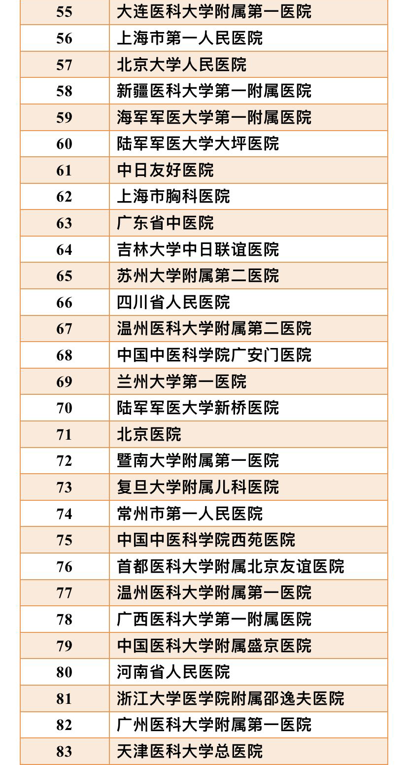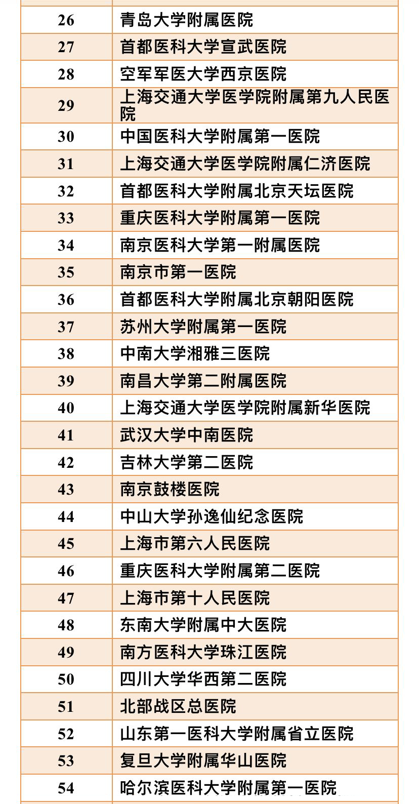 其中,华中科技大学同济医院附属协和医院、华中科技大学同济医院附属同济医院、武汉大学人民医院3家在汉医院跻身前十。