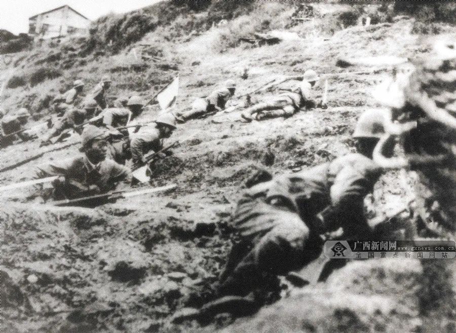 图为昆仑关战役中国军队向日军山头阵地发起冲锋。广西壮族自治区档案馆供图