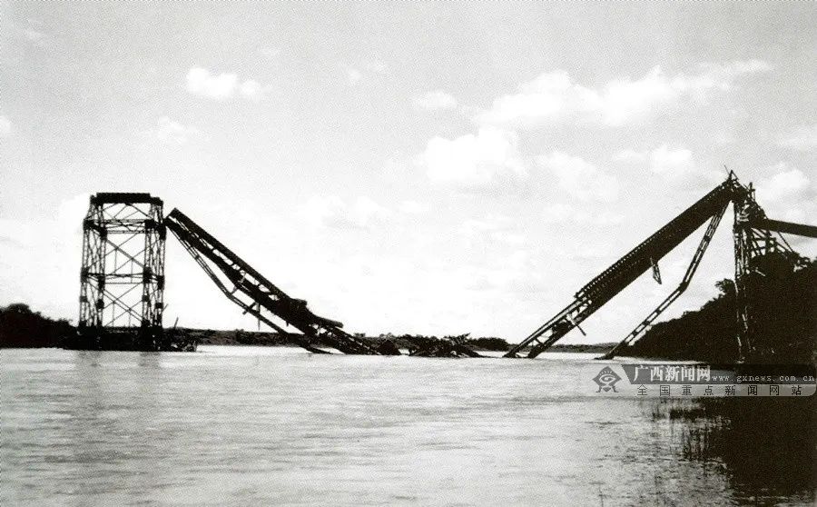 图为1944年被日军飞机炸毁的柳州大桥。广西壮族自治区档案馆供图