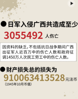 1939年和1944年,日军先后两次入侵广西,给广西造成了巨大的人员伤亡和财产损失。