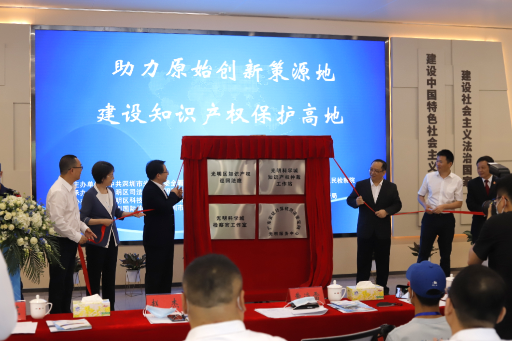 2022年4月26日,在第二十二个世界知识产权日到来之际,深圳市光明区成功举办了“助力原始创新策源地,建设知识产权保护高地”活动,光明区知识产权巡回法庭、光明科学城检察官工作室、光明科学城知识产权仲裁工作站及广东安证计算机司法鉴定所光明服务中心集中揭牌,构建了集诉讼、调解、仲裁等于一体的多元化、一站式知识产权争端解决模式,全面开启知识产权综合司法保护“光明模式”。