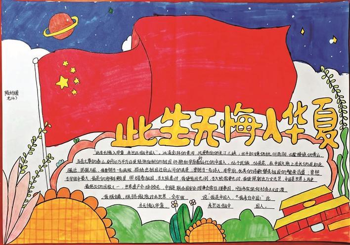 活动启动以来,宝安学子跃跃欲试,已有不少学生迫不及待地“落笔传情”,对手抄报内容、配图进行精心设计,将自己的家国情凝聚在彩色画笔间,表达了树立理想、刻苦学、砥砺品格、全面发展的坚定决心,诠释了“以梦为马 向阳花开”的昂扬斗志和美好憧憬。塘尾万里学校陈利煋的《此生无悔入华夏》、径贝小学周亦锋的《争做新时代好少年》、坪洲小学吴弘毅的《我的城市 我的家》、新安中学高中部骆蕊宇的《向阳花开》、清平实验学校叶鸿成的《我爱祖国 强国复兴有我》……这些作品不仅内容紧扣主题、设计新颖独特,而且色彩搭配丰富、图文并茂、书写美观。