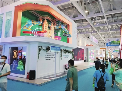 “产业可拓展”主题展区,展示了青岛数字文化、原创音乐、影视制作、城市IP等最新发展成果。其中,青岛出版集团带来的“海洋文化数字化展示项目”,利用海洋虚拟现实、海洋数字孪生、海洋数字生态箱等多种数字媒体技术和设备,展示和传播青岛特色、优势海洋文化内容。“城市可阅读”主题展区结合手造主题,打造了“上街里手造集市”,为青岛手造企业、文创企业提供了展销平台。