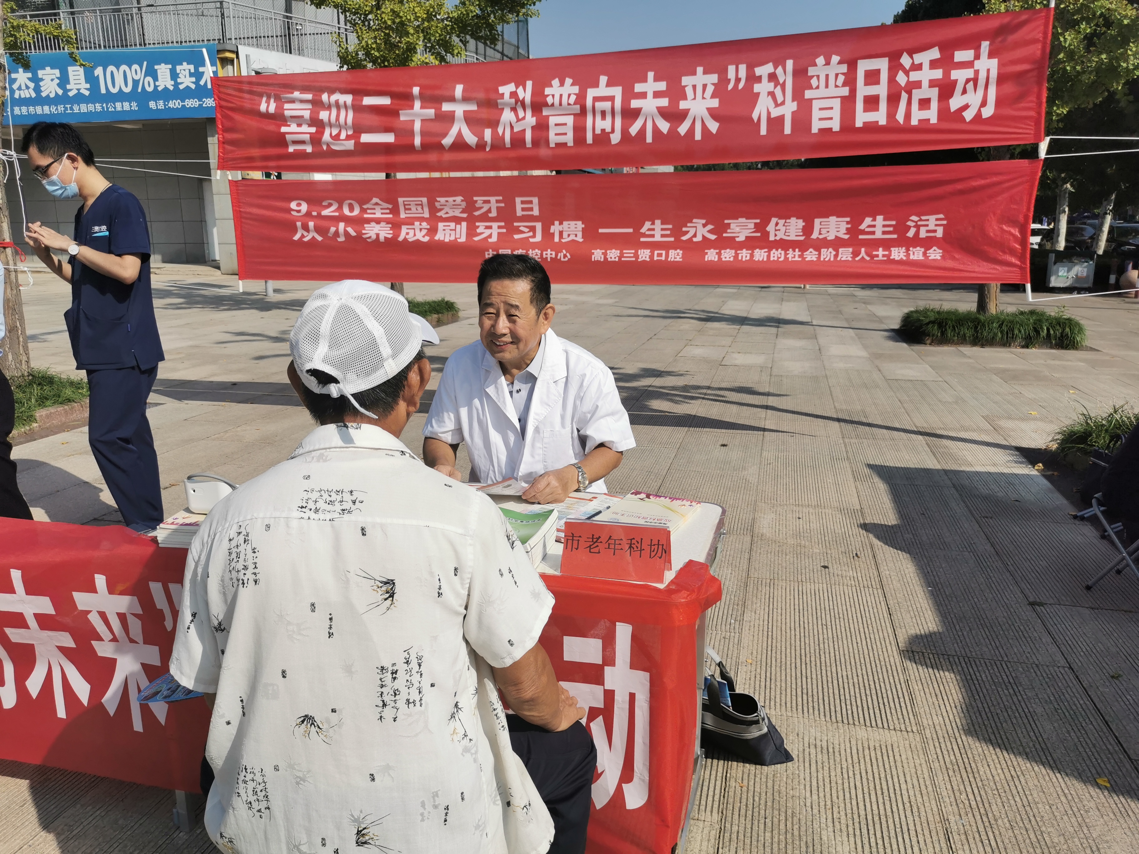高密市20多个单位共计派出科普志愿者60余人,活动现场,工作人员通过悬挂横幅、摆放展板、发放宣传资料、接受群众咨询、发放《公民科学素质读本》《应急科普知识手册》等方式,向市民普及疫情防控、健康生活、防灾减灾、应急救援、文明城市创建等方面的科普知识。其中,以老科协“五老”志愿者姜玉亭为首的12名老专家、老医生、老科技工作者通过科普宣传营造讲科学、爱科学、学科学、用科学的浓厚氛围。本次活动,共发放科普宣传资料5000份(册),手提袋、科普扑克等科普宣传品2600份,接受咨询200余人次。本次活动还为60余名青少年及群众进行口腔健康检查,获得了广大群众的一致好评。