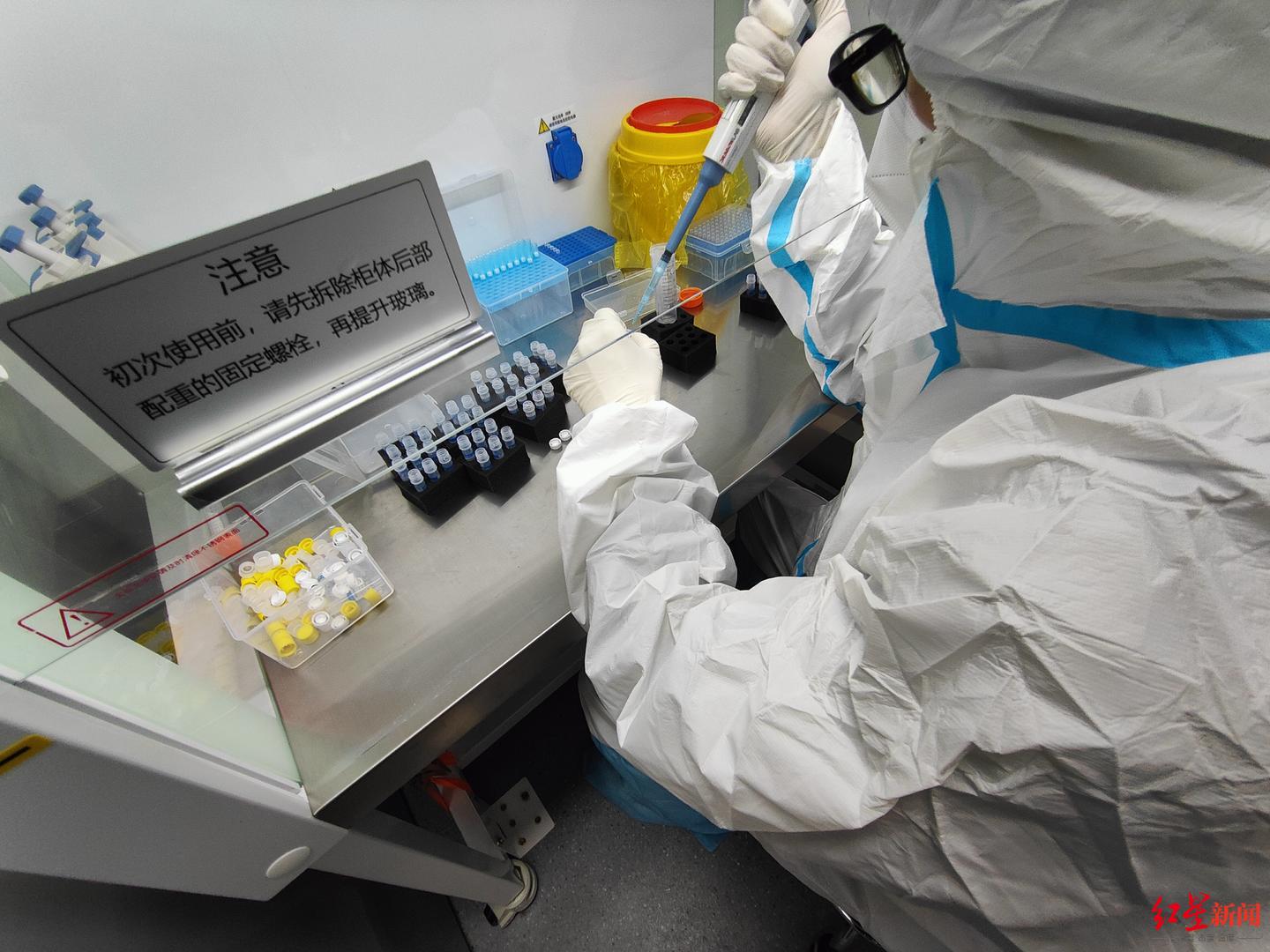 重庆医疗队队员在进行核酸样本检验
