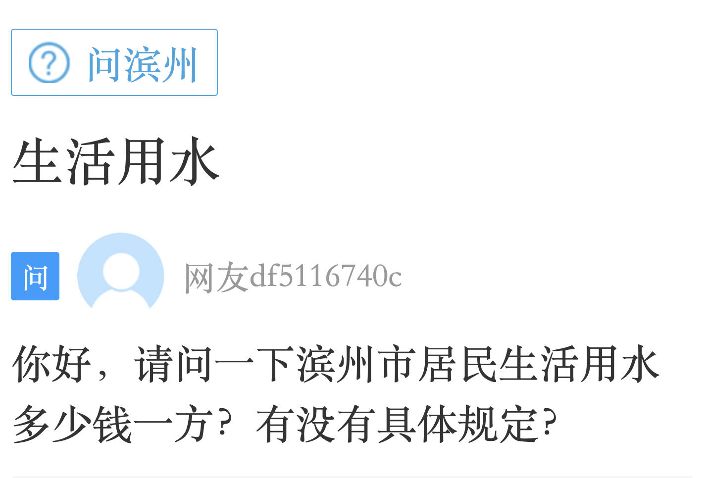 齐鲁网·闪电新闻9月19日讯 滨州的一位网友在《问政山东》网络问政平台留言,咨询滨州市居民生活用水价格和相关具体规定。