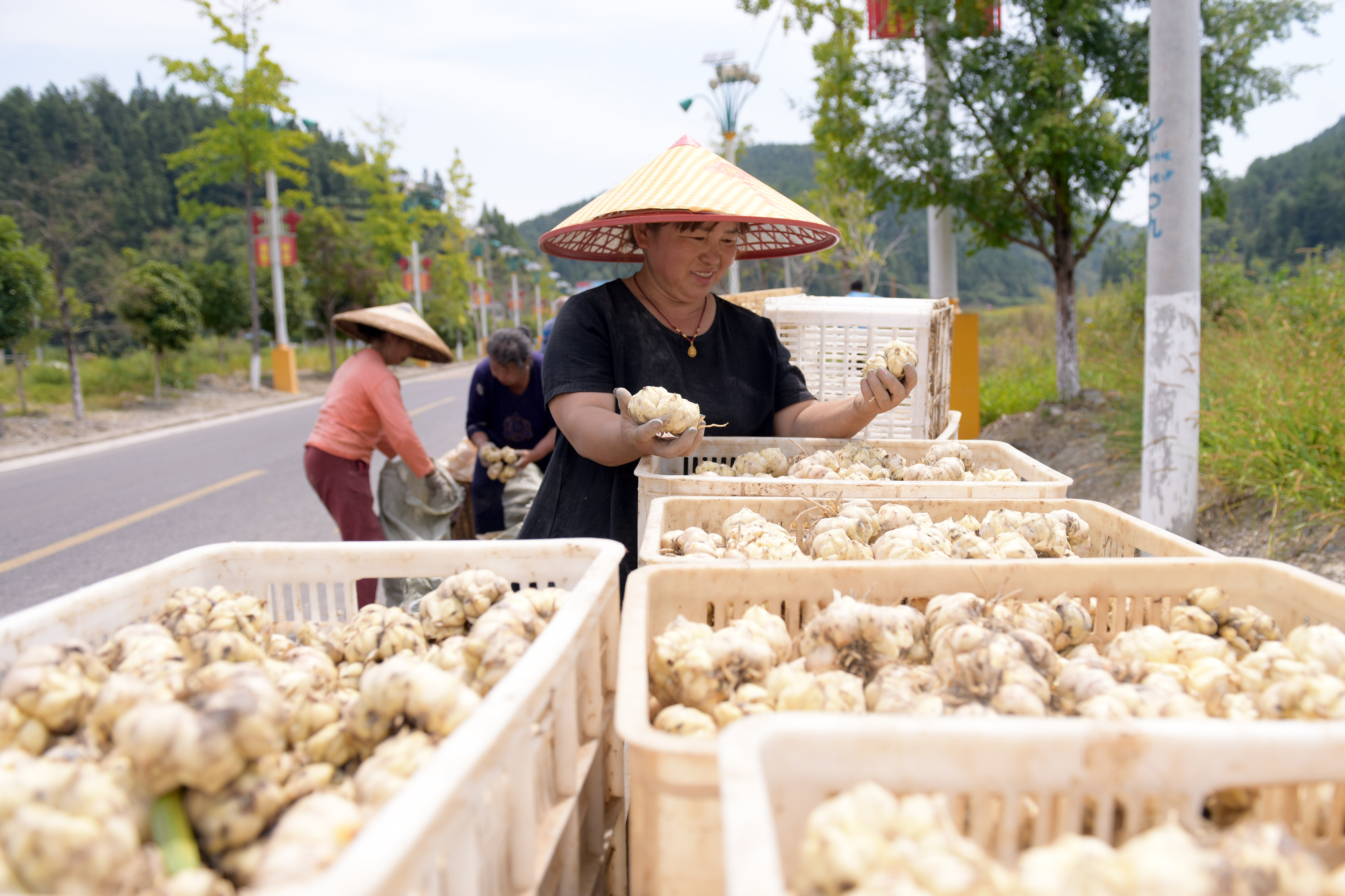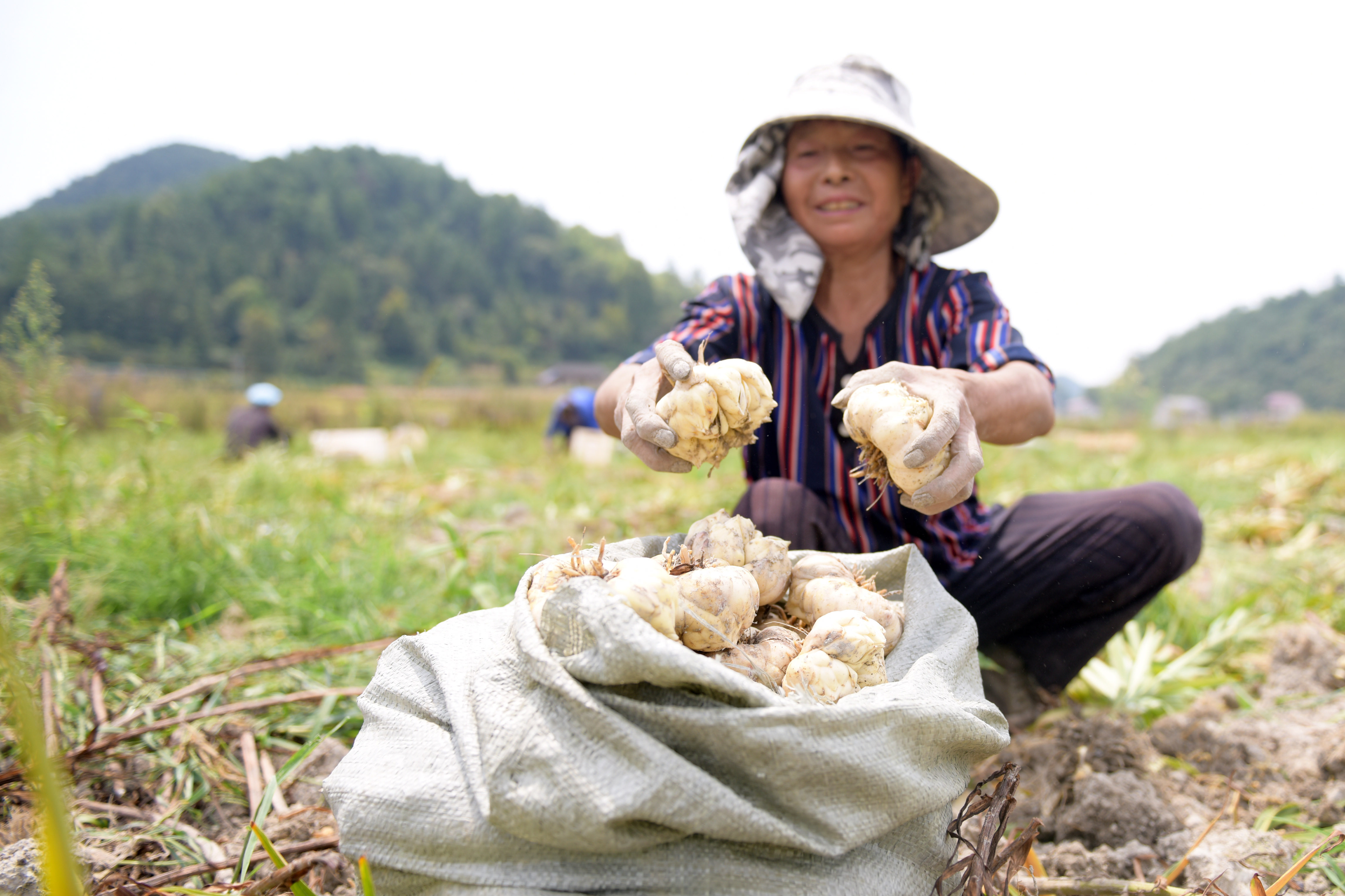 “挖百合两毛钱一斤,一天挖个四五百斤,有百把块钱,挖得快的能挖千把斤呢,有了这个基地我们老百姓天天都有活干。”客楼镇毛湾村村民黄顺英高兴地说。