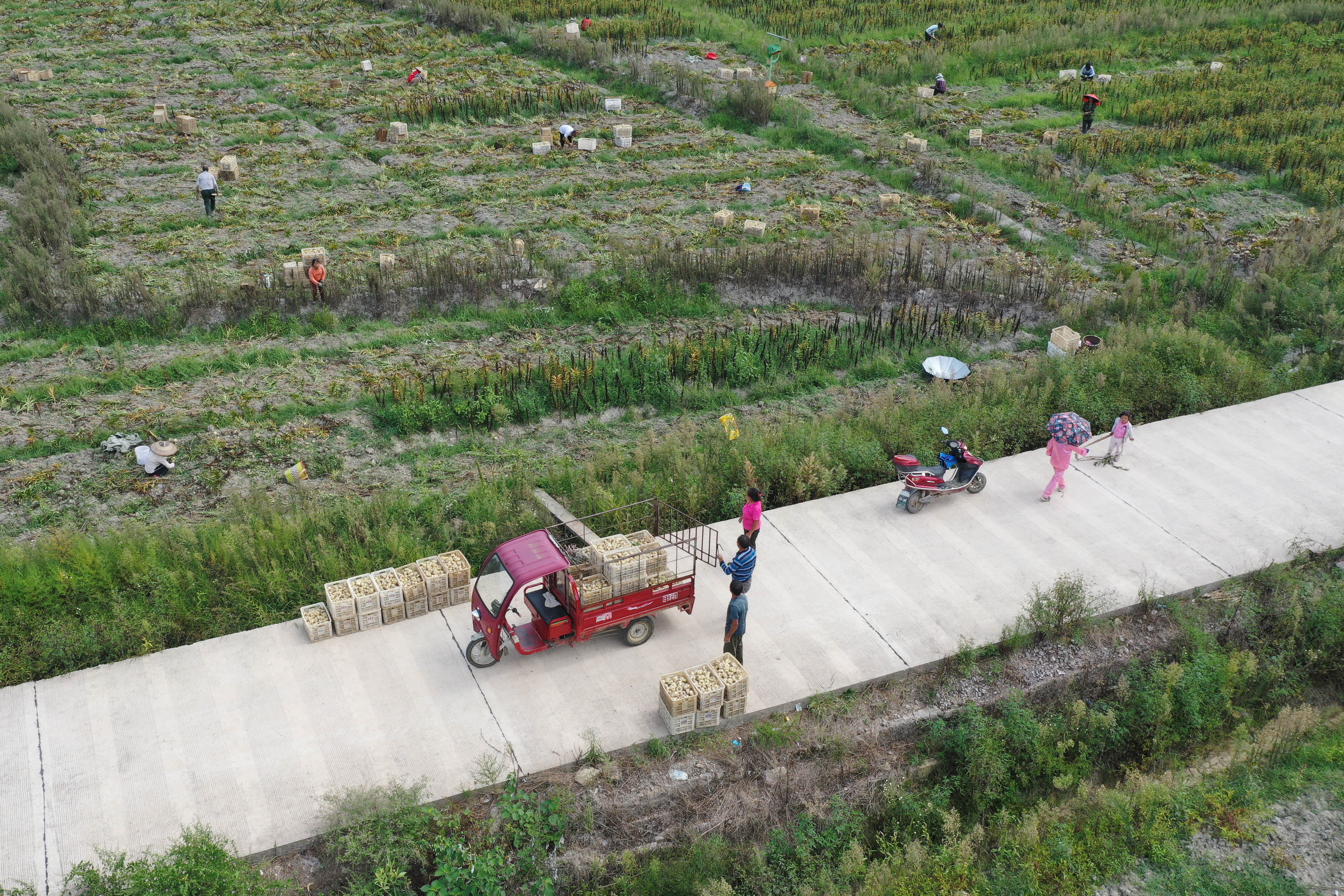 时下,客楼镇安山村种植的百合迎来采收季,走进安山村百合种植基地,只见30多名村民正忙着采挖、分拣、装运百合,现场呈现一片热闹繁忙的丰收景象。