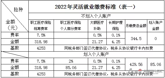 按照新的缴费标准,灵活就业人员可选择7.5%缴费费率每月需缴纳医保费用344.5元(含大额医疗补助、长期护理保险);也可选择9.5%缴费费率(含划入个人医保个人账户2%缴费费率)每月需缴纳医保费用429.56元(含大额医疗补助、长期护理保险),其中将按月划入个人医保账户85.06元。