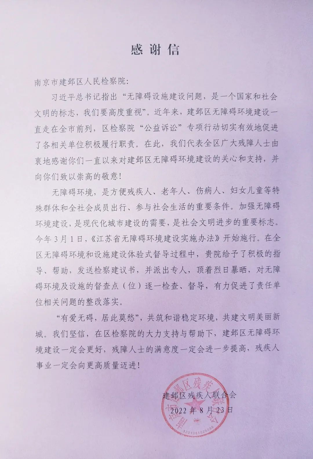 “无障碍设施建设问题,是一个国家和社会文明的标志”,建邺区检察院将继续落实上级院各项要求,围绕《江苏省无障碍环境建设公益诉讼专项监督活动方案》,将现有的21件线索制发检察建议,督促行政机关及时整改,并继续在与各行政机关建立长效协作机制、完善公共场所和公共交通的无障碍化建设、加大无障碍环境的法律法规的宣传引导等方面发力,不断提升残疾人、老年人等特殊群体在新时代的安全感、获得感和幸福感。