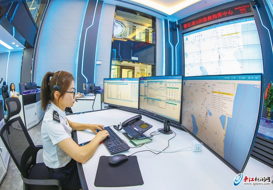 无独有偶。来到晋江市医院爱国楼院区,记者见到原业务用房8号楼焕然一新。今年7月刚投用的晋江市120急救指挥中心新办公楼正是坐落于此。“你好,这里是120急救指挥中心,请问需要救护车吗?”“附近有没有明显的标志物?”……走进调度中心,只见调度员正忙而不乱地接听群众来电。据悉,晋江市120急救指挥中心项目总投资3000万元,分两期建设,一期设有医疗急救科普馆、新调度中心、行政办公区等。