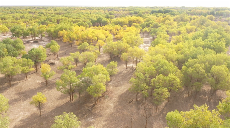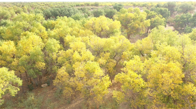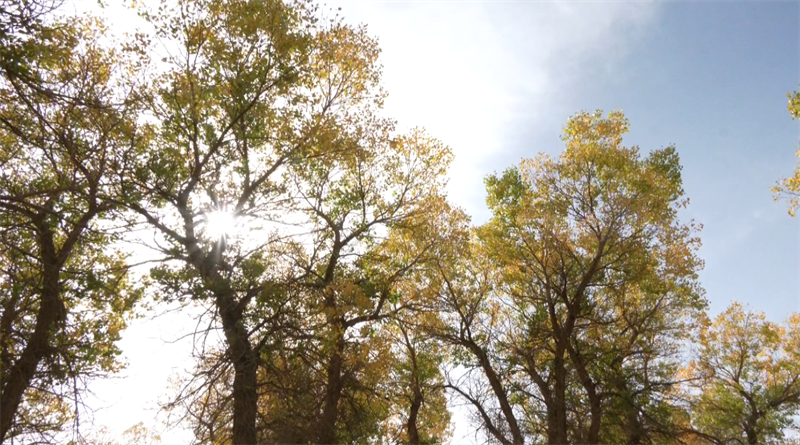 每年金秋时节,位于额济纳旗七道桥的小胡杨总是率先展露出秋色,树梢上一片片黄色、半黄半绿的叶,在秋风的吹拂下婆娑起舞,在阳光的照射下显得五彩斑斓,格外美丽。