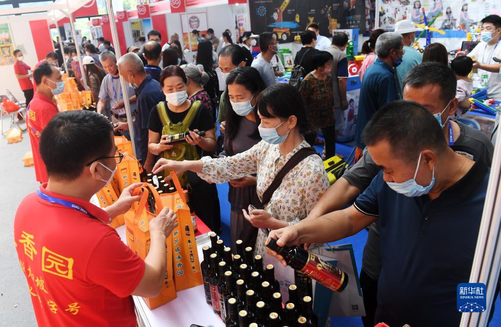 9月19日,在东博会展览现场,消费者在选购来自新加坡的商品。