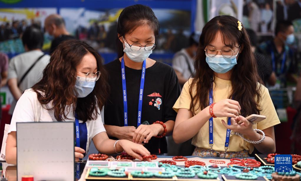 9月19日,观众在东博会东盟和RCEP精品展区参观。