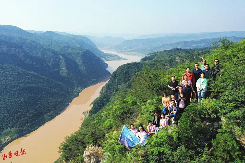 采访团与夏县工作人员在双山绝壁合影。