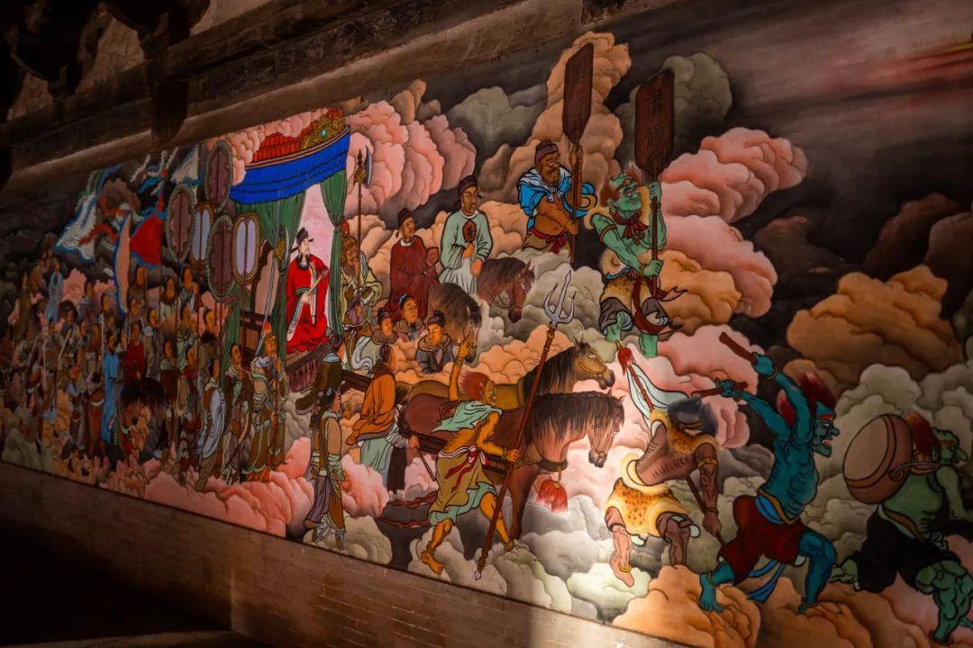 宫内现存五座元代建筑和精美的元代壁画,素有“东方艺术画廊”之美誉。其中《朝元图》是永乐宫壁画的精华所在,敷色瑰丽,为我国绘画史上的杰作。