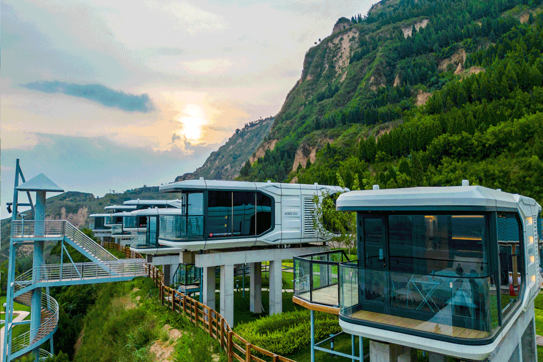 7个太空舱犹如落入凡尘的北斗七星,点亮黄河岸畔,舱内五星酒店配置,舱外帐篷烧烤齐全。