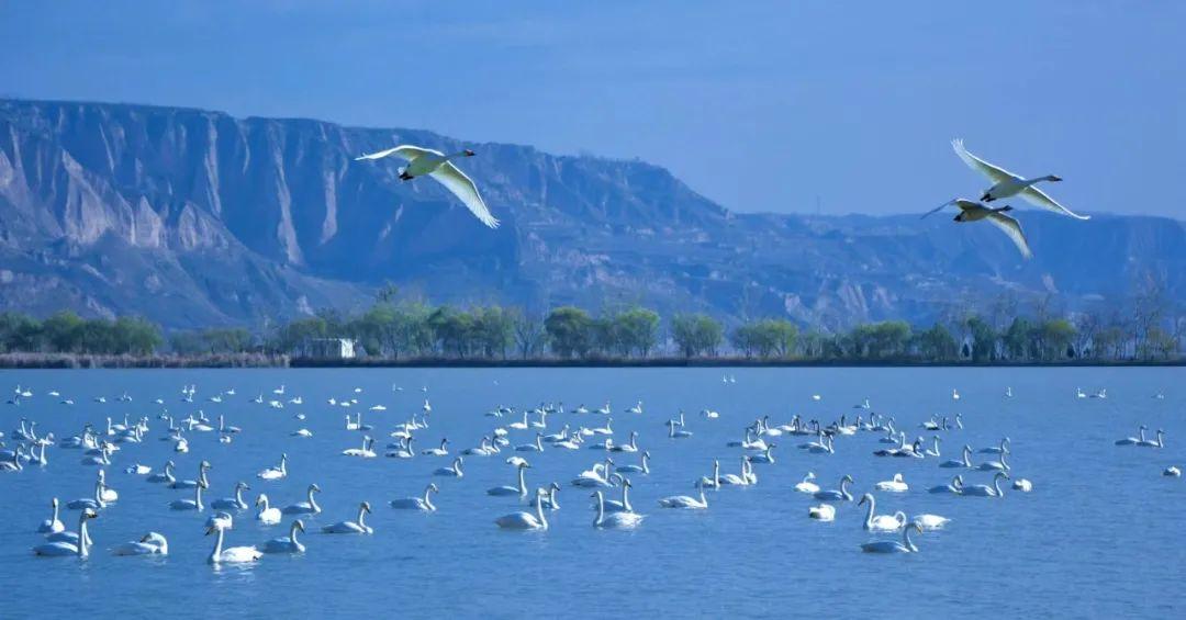 圣天湖运动休闲特色小镇是镶嵌在黄河湿地一颗耀眼的明珠。集江南水色与黄土高原风光为一体,景观异质全国独有,夏日湖中荷花争艳,冬季上万只白天鹅把湖面装扮得雍容华贵。"夏赏荷花,冬观天鹅"已成为圣天湖的独特风景。