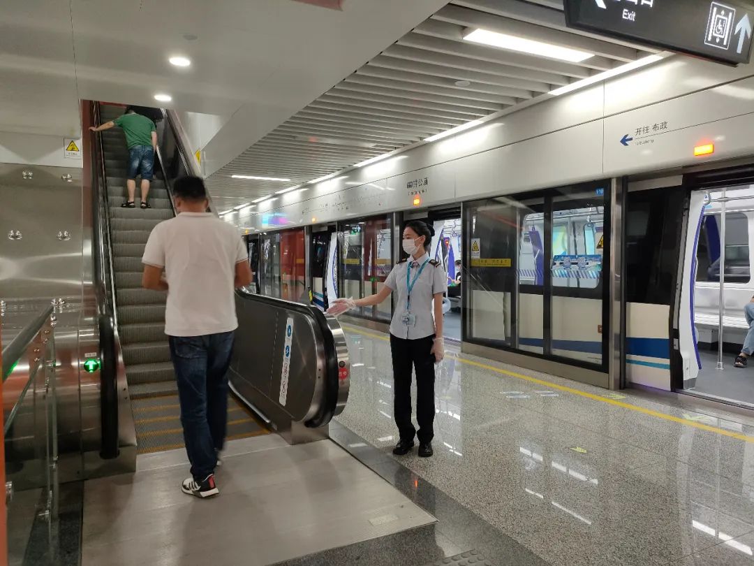 轨道交通工作人员引导乘客安全乘坐扶梯