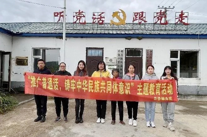 近日,安图县委编办组织全体机关干部到明月镇庆农村开展推广普及国家通用语言文字宣传活动。