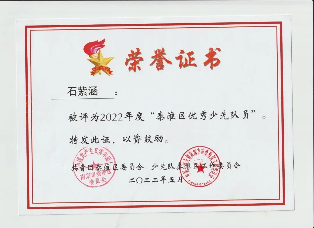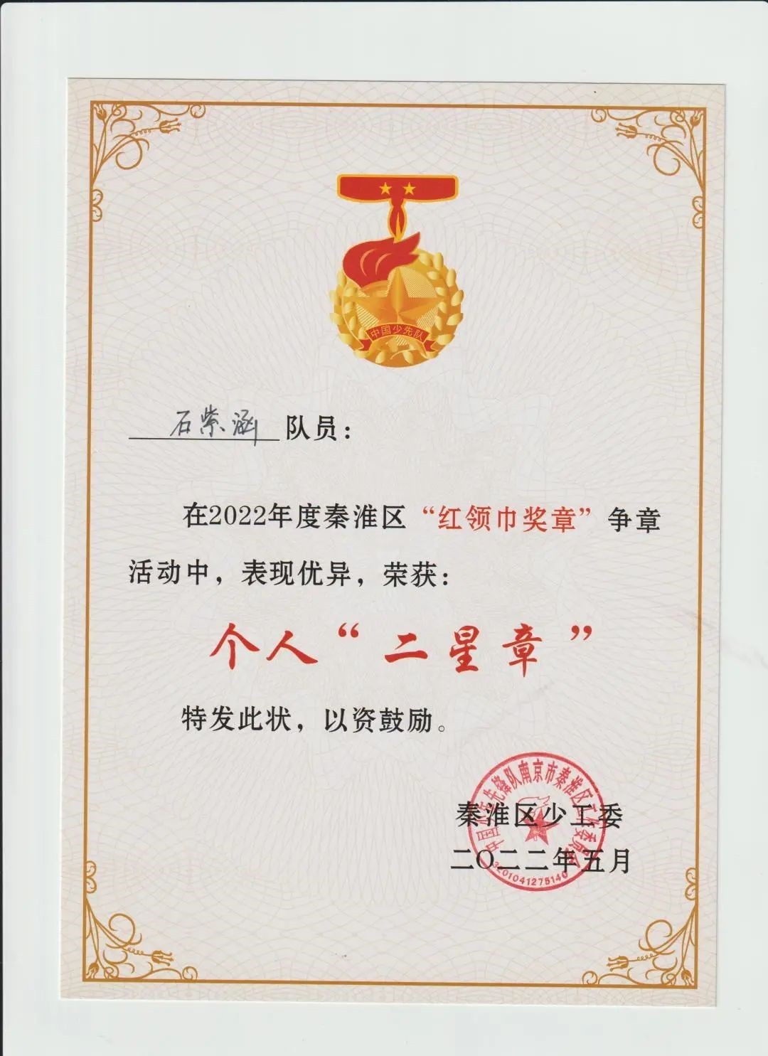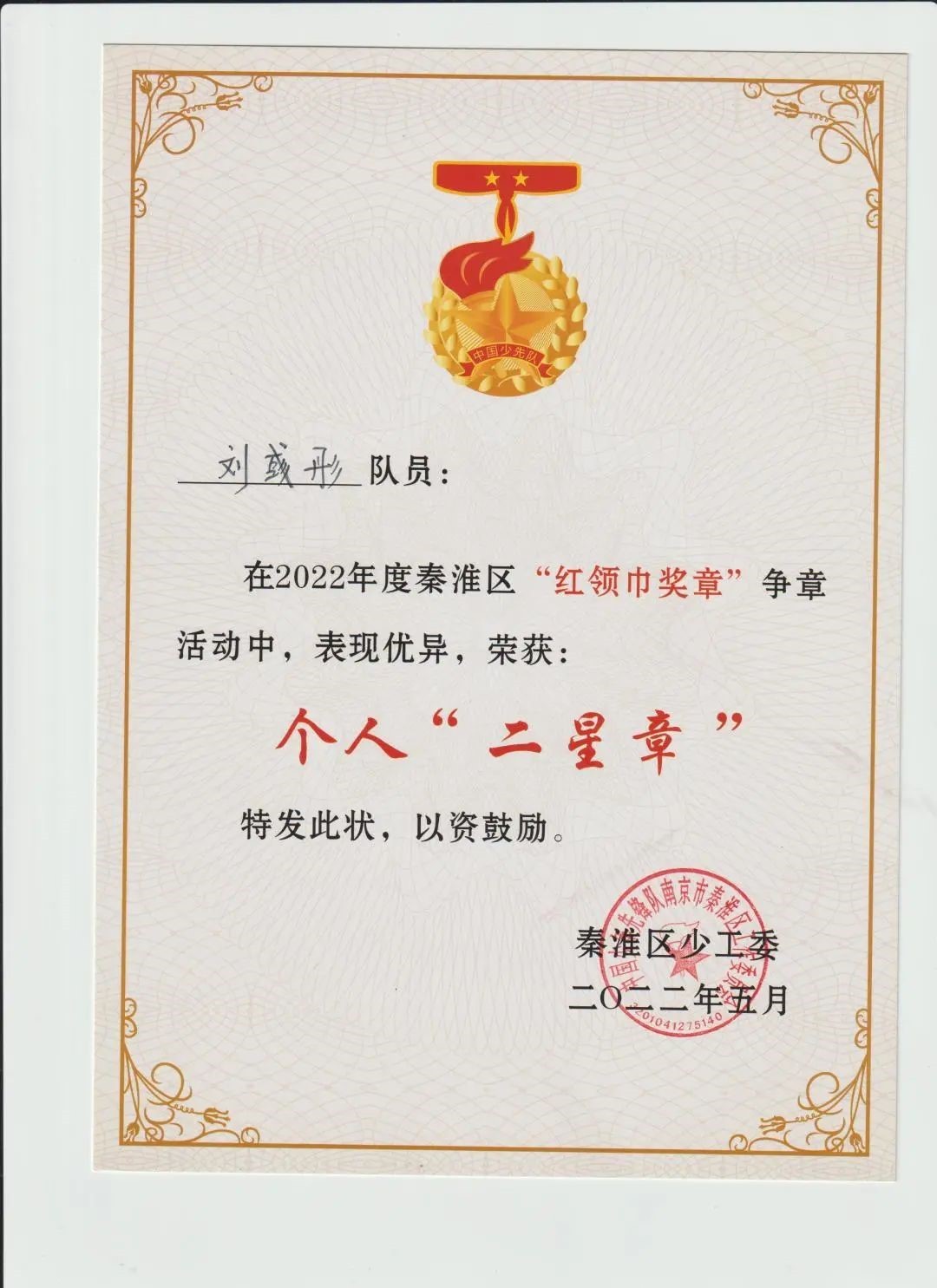 2022年秦淮区“红领巾奖状”争章活动获个人“二星章”
