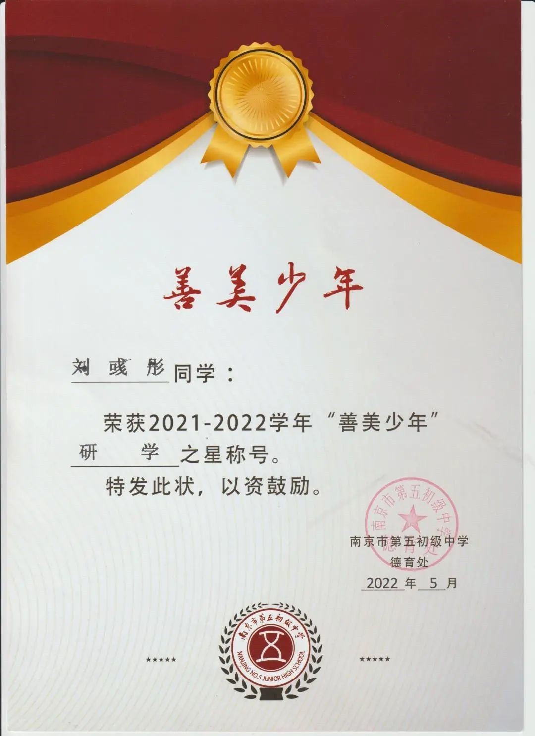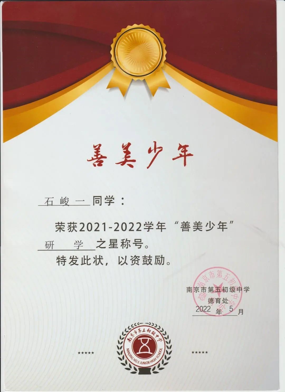 力学力行,尽善尽美!在南京市第五初级中学,有这样一群学生,他们学习认真、勤奋踏实,厚厚一叠奖状是他们刻苦努力的证明;他们乐于奉献、热心帮助,是老师的好帮手,同学的好伙伴。他们,有一个共同的名字——”善美少年”。