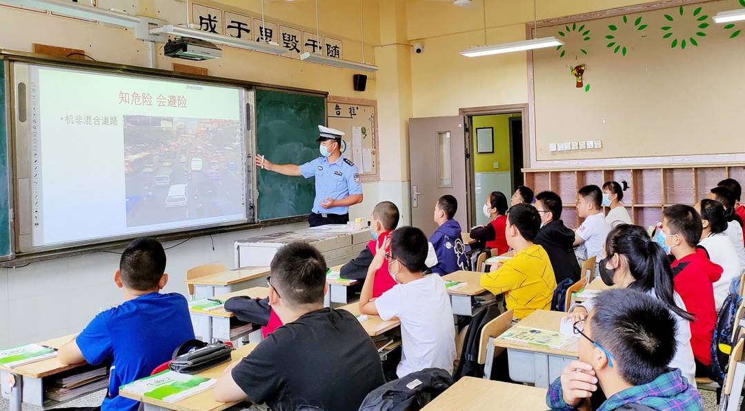 9月21日上午,成都交警六分局民警走进高新西区新科学校,开展“文明交通、安全出行”“小手拉大手”主题宣教活动。活动中,民警根据在校学生的年龄和心理特征,结合同学们步行、乘车、骑车等日常出行方式,生动形象地讲解随意横穿公路、翻越防护栏、过马路低头看手机、乘坐电动自行车不佩戴安全头盔等交通陋习的危害性,教育同学们从小养成“知危险、会避险”的良好出行习惯,牢固树立安全意识,为在校学生上下学铺就一条平安之路。