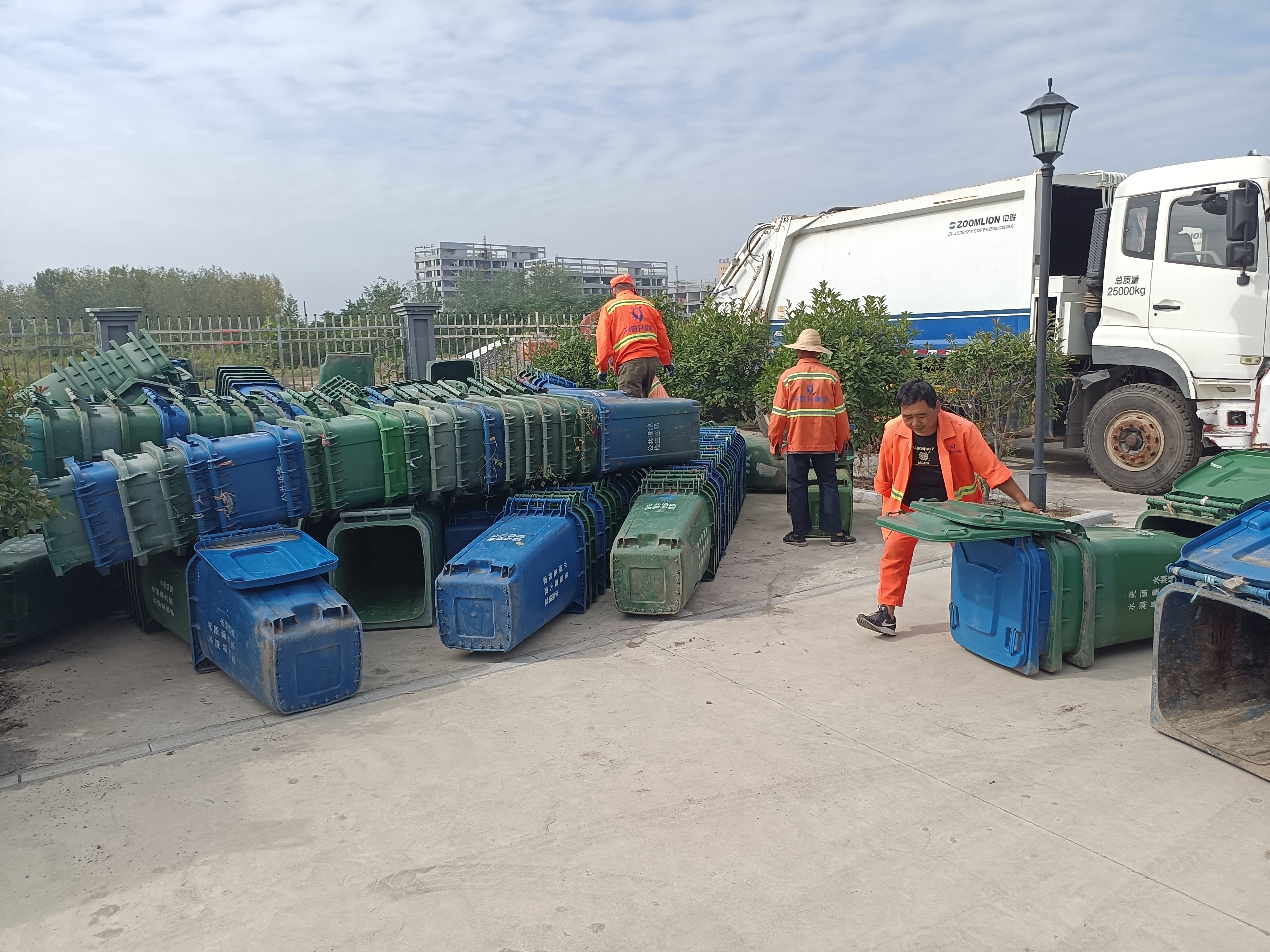 工作人员对垃圾桶进行更换