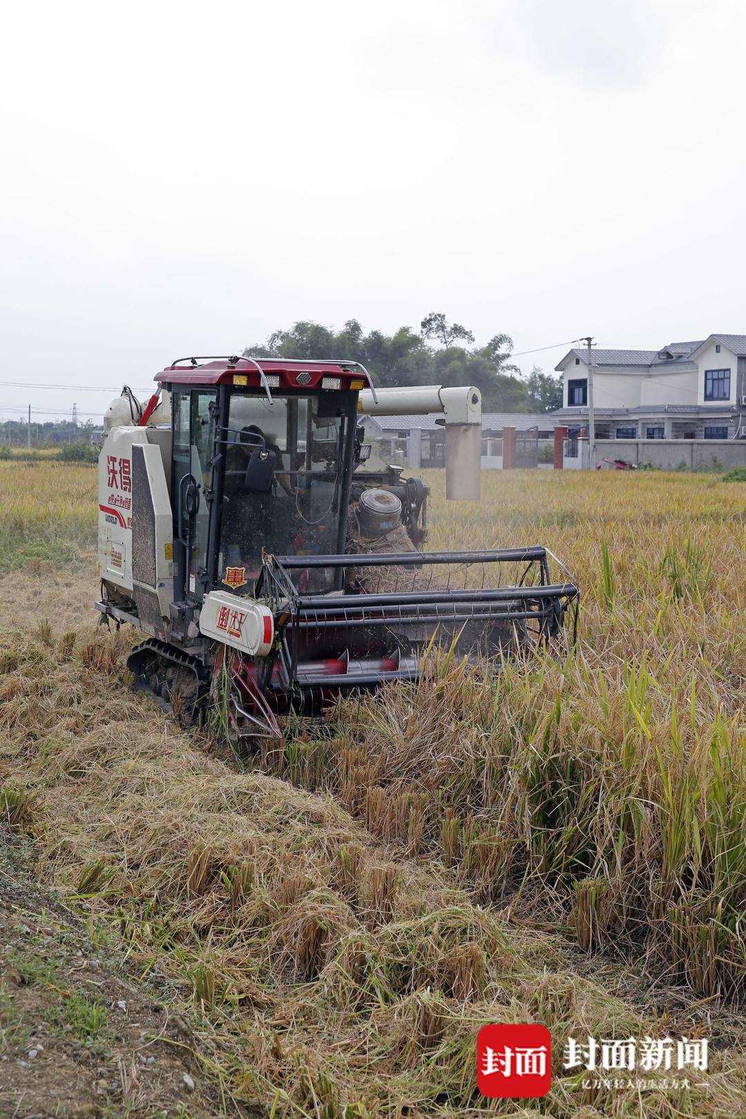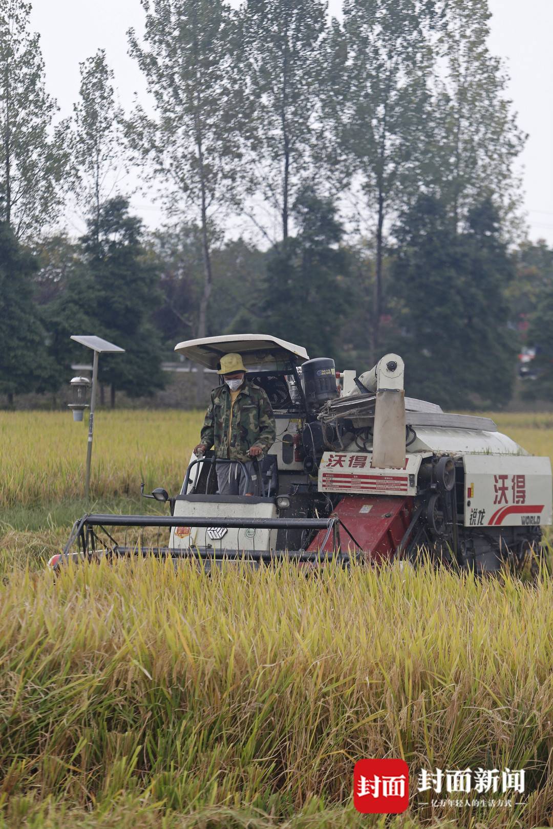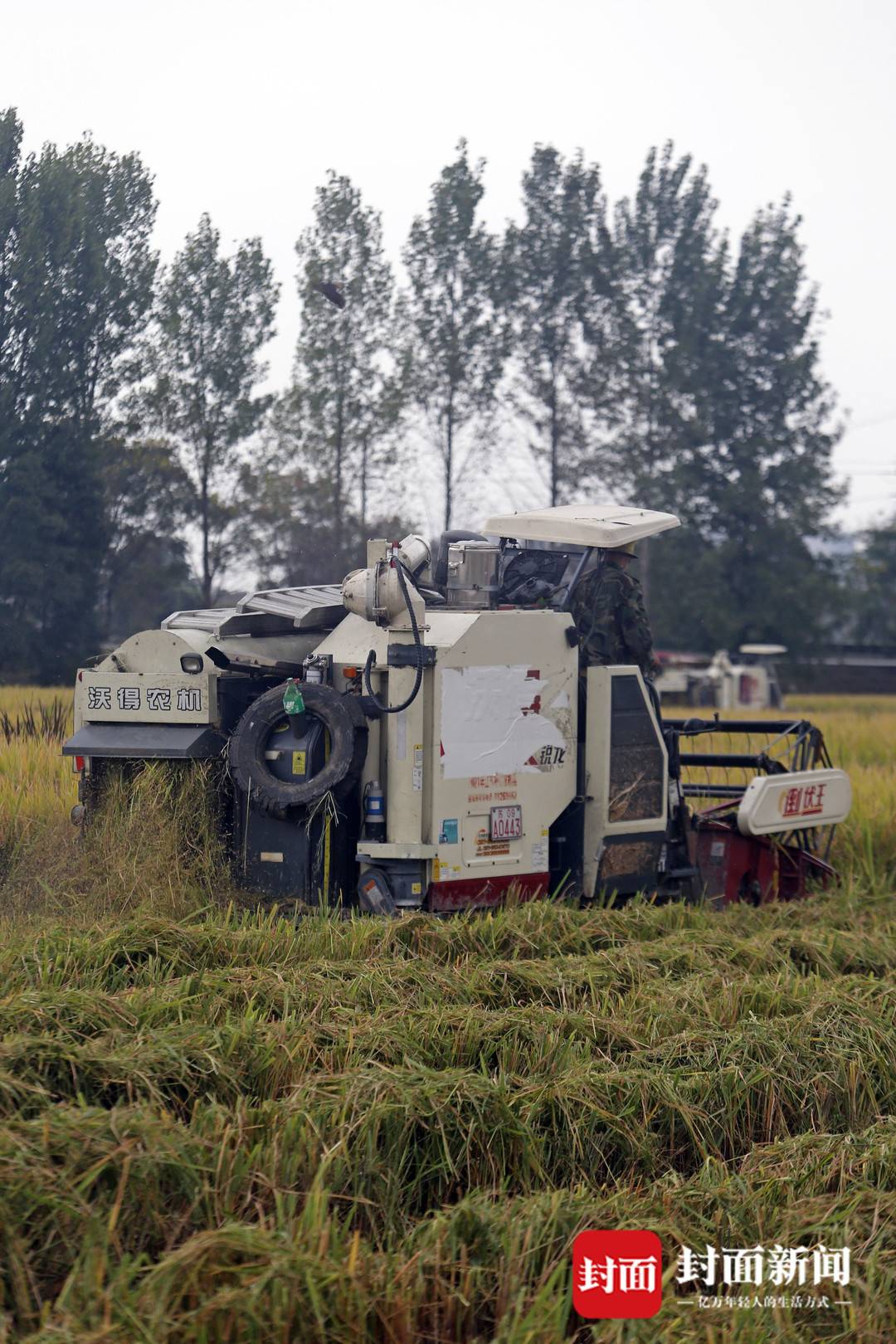 9月21日,在成都市天府粮仓国家现代农业产业园的高标准农田里,几辆收割机伴着轰隆隆的机器声,穿梭在金色的稻田,进行收割。
