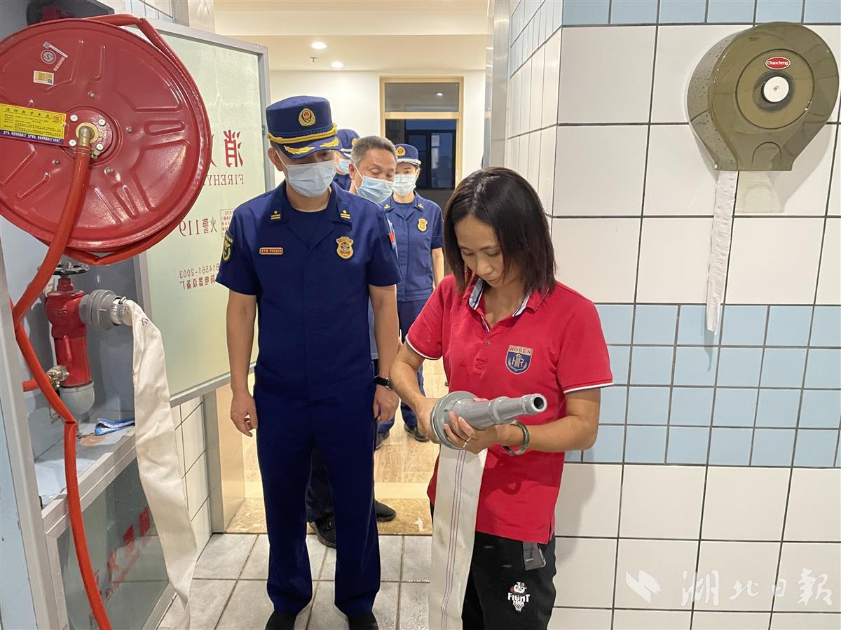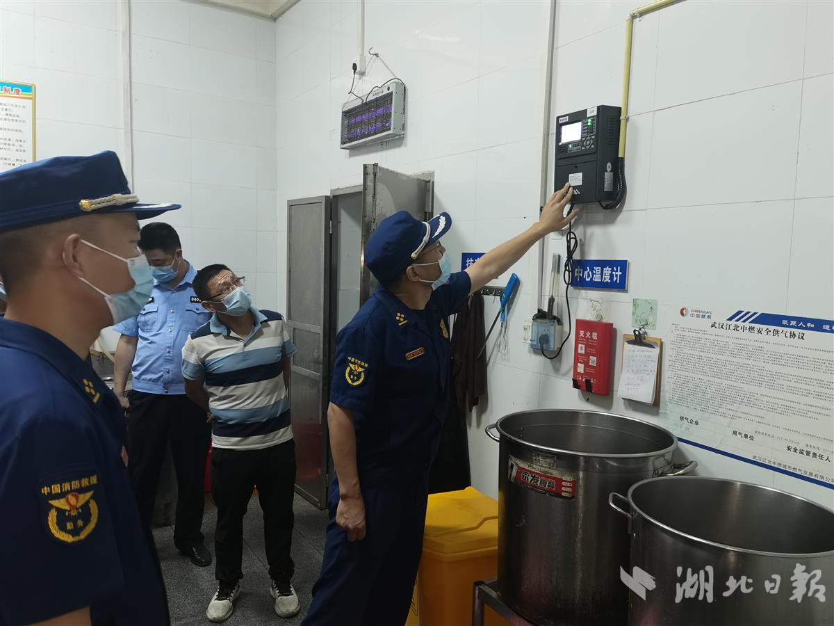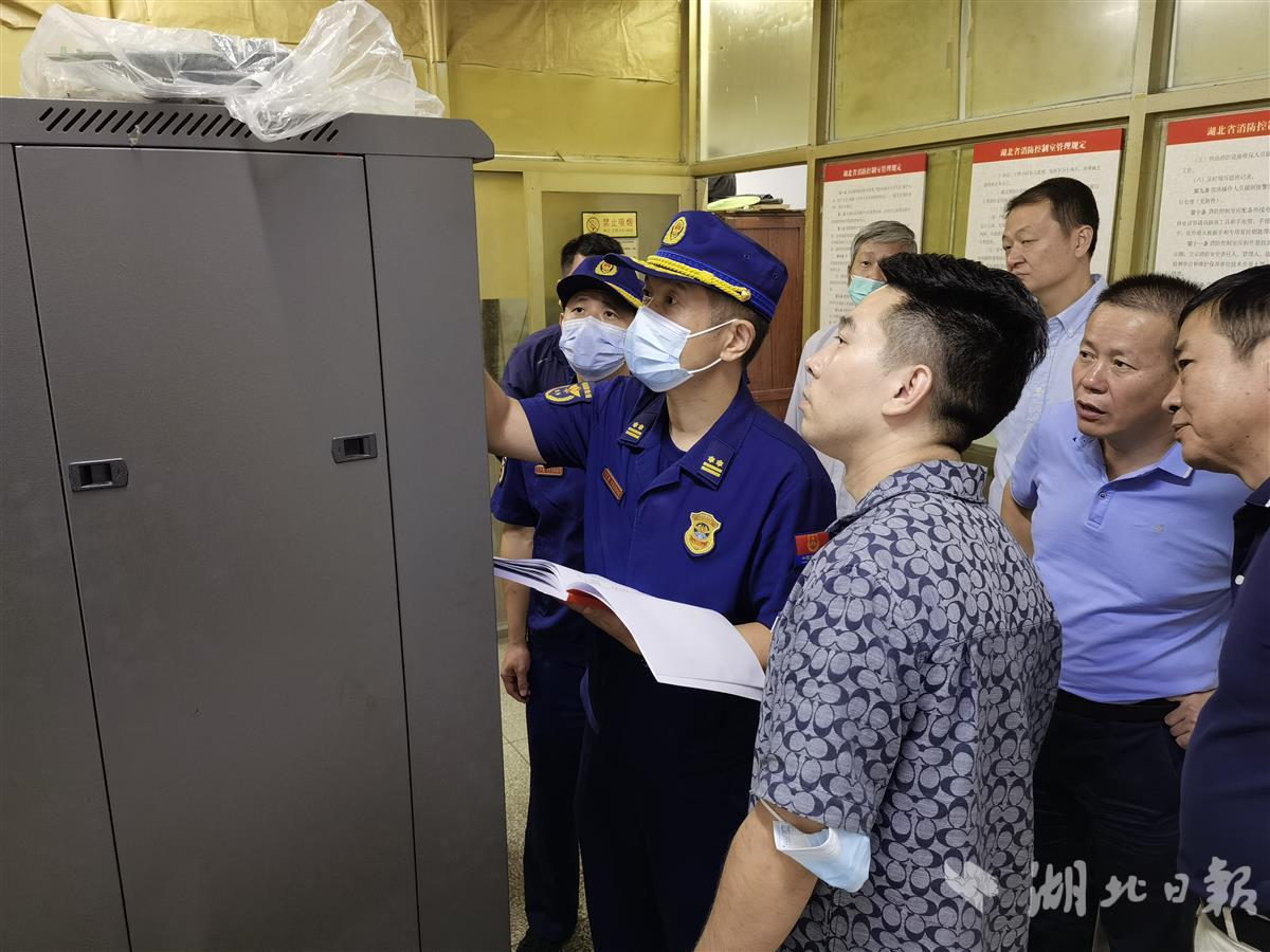 在东西湖区,检查组到武汉轻工大学常青院区实地检查学生宿舍楼,抽查火灾自动报警系统、疏散标识、应急照明等消防设施,现场指导学校日常消防管理、灭火应急准备、消防宣传培训等内容。