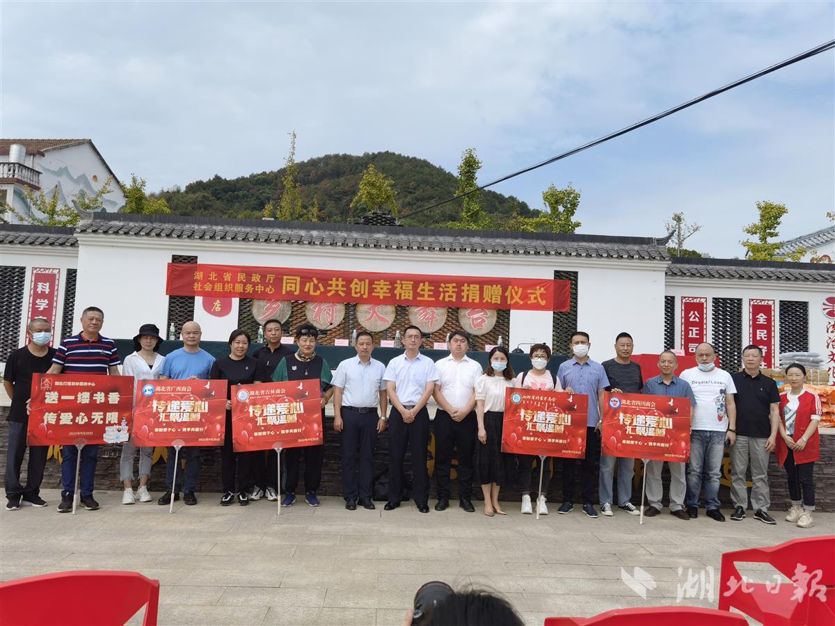 一同参加捐赠活动的湖北省广西商会、湖北省四川商会、湖北省吉林商会、湖北省内蒙古商会等4家省级社会组织,筹集了近20万元的助学助困物资和资金,湖北灯塔助学服务中心为大冶市捐赠千余本丰富多彩的高质量书籍。省民政厅社会组织服务中心全体党员干部捐款捐物,为大冶市金山店镇火石村、铭山乡彭晚村、保安镇盘查村、沼山村等62户困难群众送去了生活必须的米、油、电扇和四件套等物资,合力同心助力大冶市美好环境与幸福生活建设。